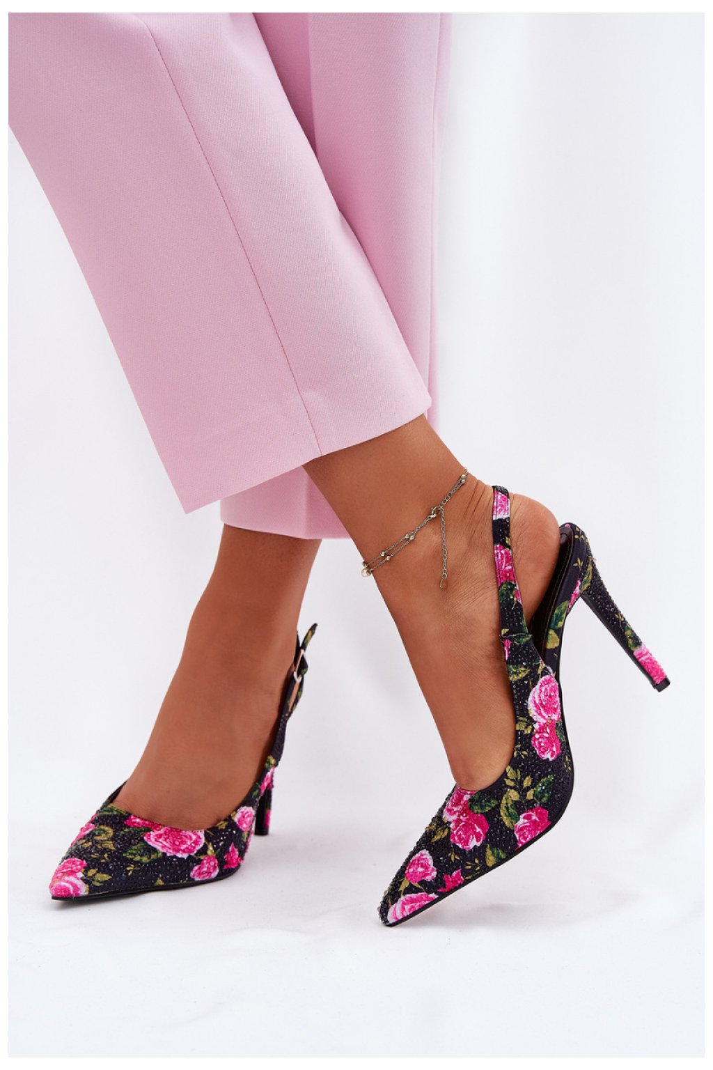 Zdobené dámské sandály na jehle jsou nabídkou pro ženy, které ocení styl a originalitu. Model s špičatou špičkou krásně zjemňuje nohu. Zapínají se na kotníku, což zajišťuje stabilitu a přizpůsobení. Svršek se vyznačuje výrazným květinovým vzorem, který celku dodává výjimečný charakter. Je to ideální volba na speciální příležitosti, slavnosti nebo letní večery, kdy chcete zdůraznit svůj jedinečný styl.