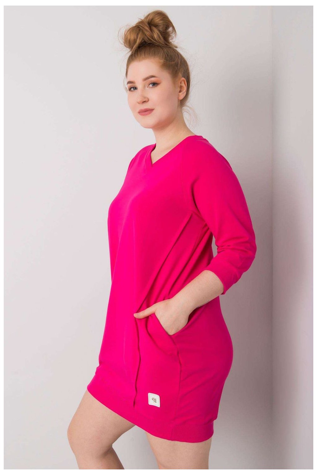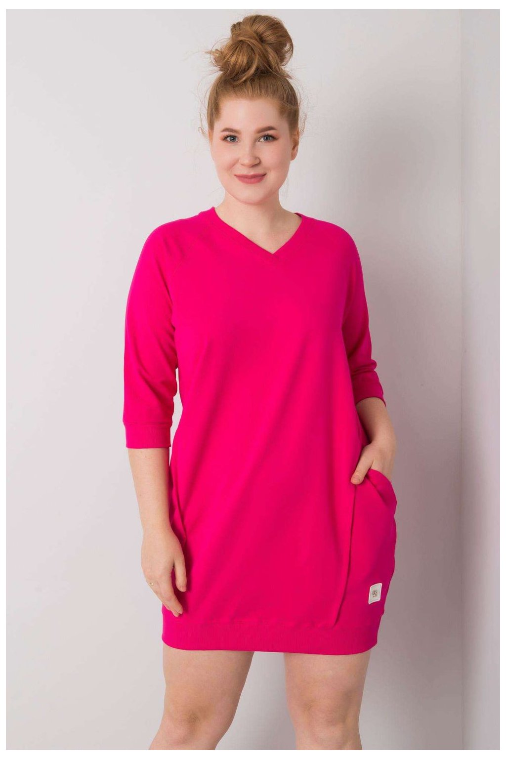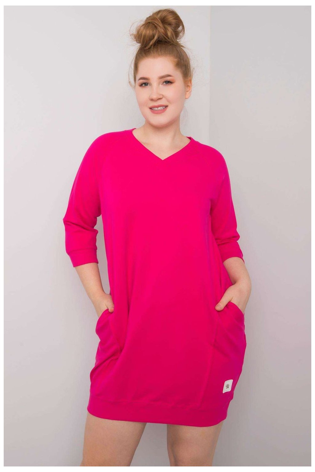 Fuchsiové plus size šaty s kapsami a 3/4 rukávy.