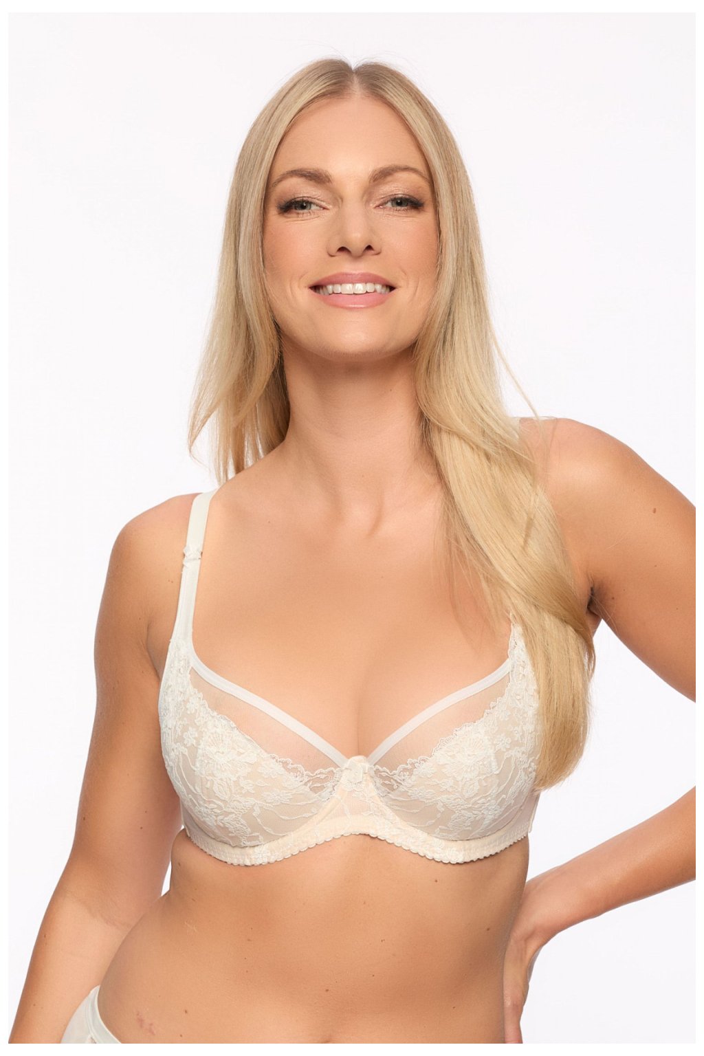 Unikátní polovztužený podprsenka vytvořený s ohledem na spojení funkčnosti a elegance. Tento model poskytuje vynikající podporu díky spodním kosticím a jemně ztuženým košíčkům, jejichž vnitřní část je podšita měkkou pěnou, což zaručuje pohodlí po celý den. Košíčky jsou obšity lámavou páskou s použitím moderní technologie plochých švů, což zajistí hladký povrch a zabrání vyčnívání podprsenky pod oblečením. Jemné korzetové a síťové ozdoby dodávají celku ženský, smyslný charakter. Podprsenka se zapíná na zádech a nastavitelné, neodnímatelné ramínka umožňují ideální přizpůsobení postavě. Model je balen v elegantní krabičce, skvělý jako dárek nebo jako stylový prvek každodenního prádla.