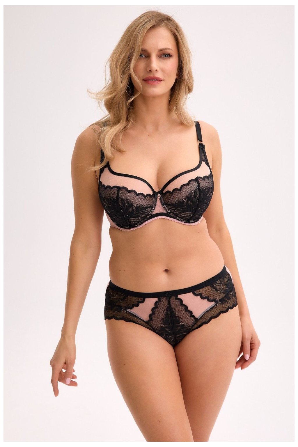 Elegantní a pohodlný polovaný podprsenka, který skvěle kombinuje funkčnost s ženským šarmem. Vnitřní část košíčků je podšita jemnou pěnou, což zajišťuje jemné tvarování prsou a pohodlí při nošení po celý den. Košíčky jsou obšity lámavou páskou a vyrobeny s použitím technologie plochých švů, což zaručuje ideální přizpůsobení a hladkost pod oblečením. Nenatáčecí, nastavitelné ramínka a nastavitelný obvod umožňují perfektní přizpůsobení siluetě. Model zdobí ozdobný vyšívaný prvek a síťové vložky, které mu dodávají lehkost a smyslný charakter. Šarmu přidává mašlička mezi košíčky, která představuje jemný ženský akcent. Podprsenka se zapíná na zádech a je balena do elegantní krabičky, díky čemuž se skvěle hodí i jako dárek.