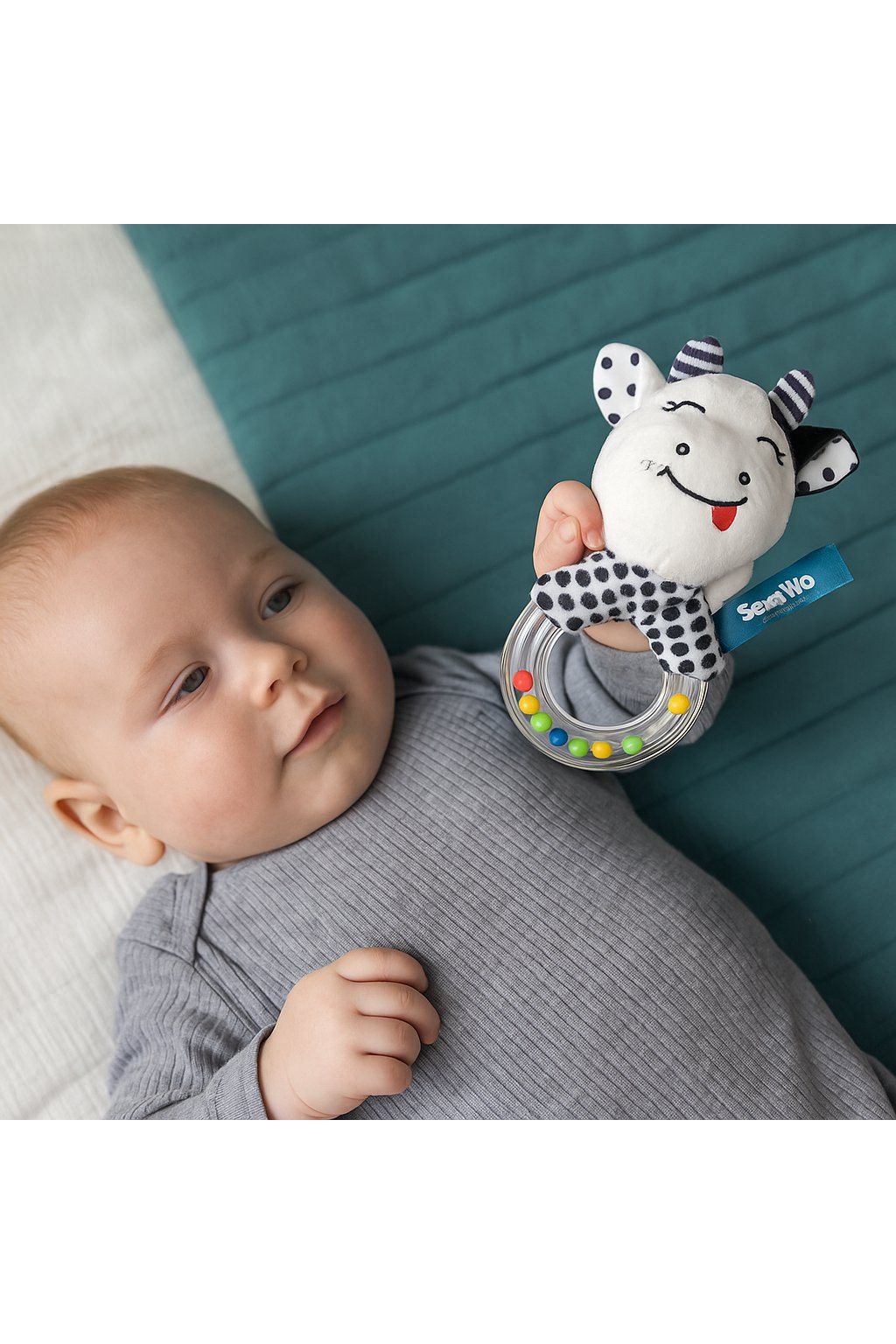 Senzorické chrastítko black&white - Kravička