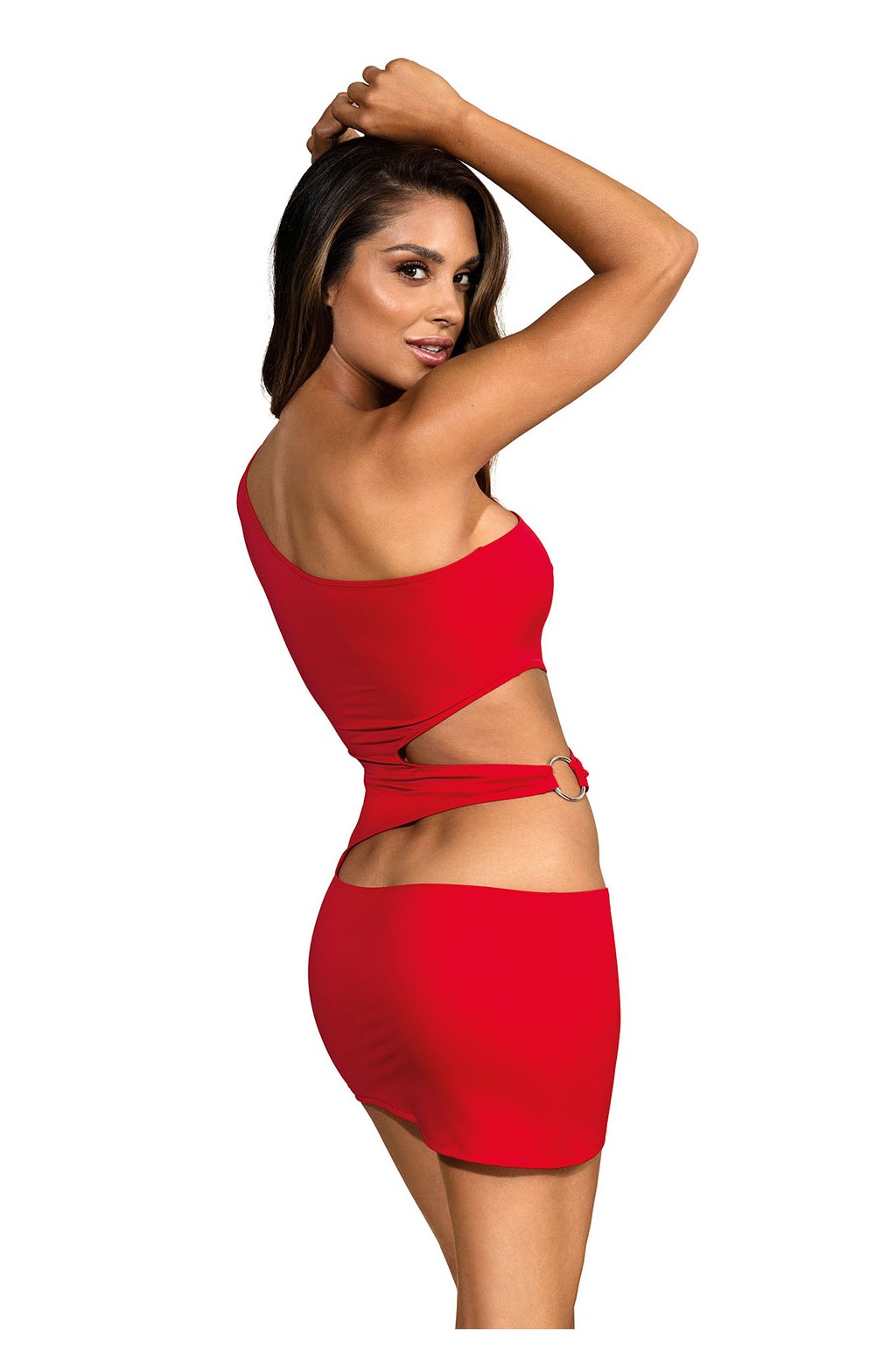 Červená kráska. Ano, pouze s naším fenomenálním návrhem. Červený materiál z mikrovlákna upoutá pozornost nejednoho pozorovatele a vzbudí závist. Šaty jsou shora vypasované a na bocích zdobené stříbrným kroužkem. S tímto střihem se budete cítit úžasně!| Velikost | Obvod beder | Obvod prsou |