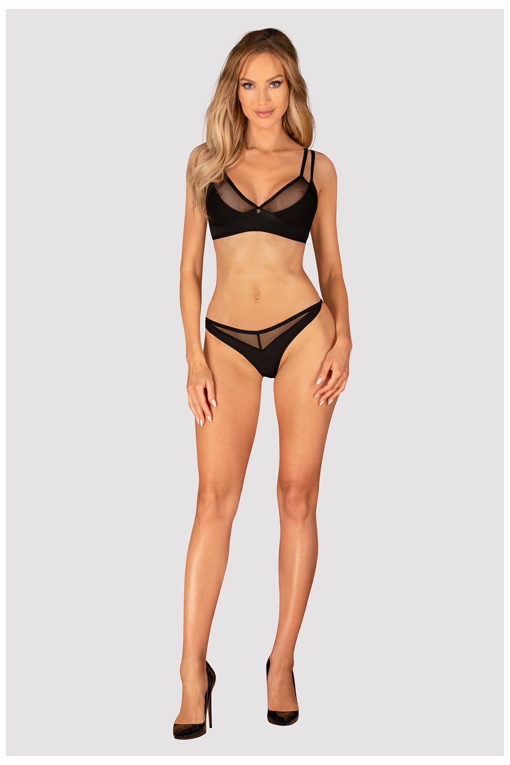 Tento sexy set v sobě spojuje pohodlí, eleganci a smyslnost, které podtrhují krásu ženské postavy. Podprsenka se zapíná vzadu, takže se snadno obléká i svléká. Košíčky nemají žádné vycpávky, díky čemuž je souprava ideální pro dámy s malým až středně velkým poprsím a dodává jejich tělu přirozený půvab. Střih podprsenky a kalhotek dokonale zvýrazňuje ženské křivky, díky čemuž se každá žena cítí jedinečná a přitažlivá. Kalhotky ve stylu tanga s nízkým střihem dodávají soupravě nádech smyslnosti a jsou ideální pro ženy, které ocení jemné a svůdné spodní prádlo. Měkká a vzdušná tkanina zajišťuje pohodlné nošení po celý den, zatímco nastavitelná dvojitá ramínka umožňují dokonalé přizpůsobení. Uvnitř kalhotek je bavlněná vložka pro větší pohodlí. Souprava je zabalena v elegantní krabičce, což z ní činí také ideální nápad na dárek pro vašeho partnera. Dvoudílná sada umožňuje vytvořit kompletní sexy vzhled, který jistě potěší každou ženu. Pro dosažení plného efektu můžete soupravu sladit s dalšími výrobky z této řady a vytvořit tak jedinečný komplet spodního prádla.