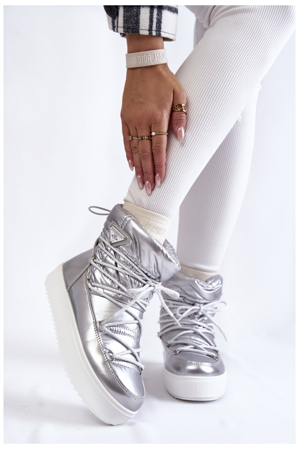 Dámské sněhule jsou vyrobeny z materiálů odolných proti větru a mrazu v kombinaci s ekologickou kůží. Nazouvací model s dodatečným šněrováním vpředu a lemem v horní části svršku. Sněhule jsou zateplené kožešinou příjemnou na dotek. Stojí na plošině, která izoluje od chladné a mokré země. Tento model by měl být váš!