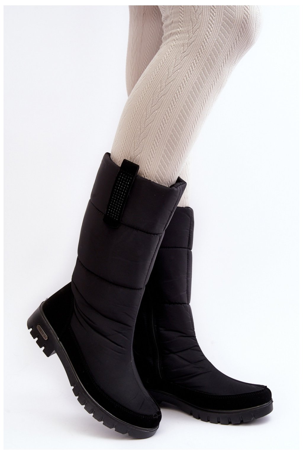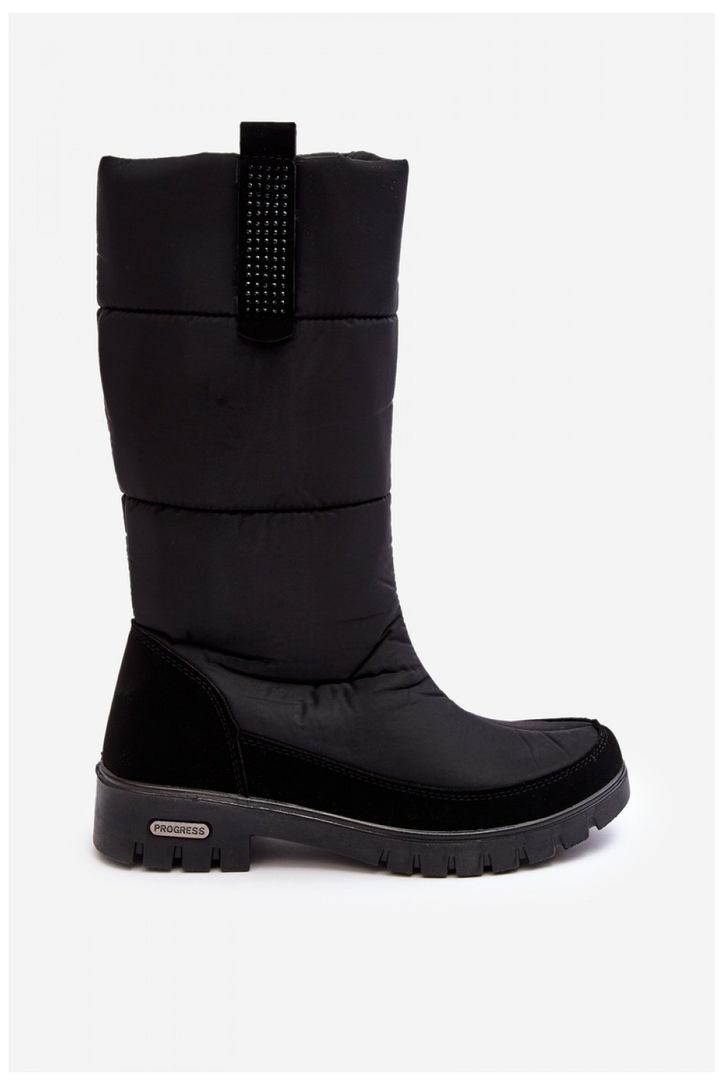 Dámské vysoké sněhule byly vyrobeny z nepromokavých materiálů. Stojí na plochém podpatku a platformě s drážkami. Uvnitř jsou zateplené ovčí kůží. Model se zapíná na zip. Pásek zdobený kamínky na svršku. Rozhodně byste je měli mít!
