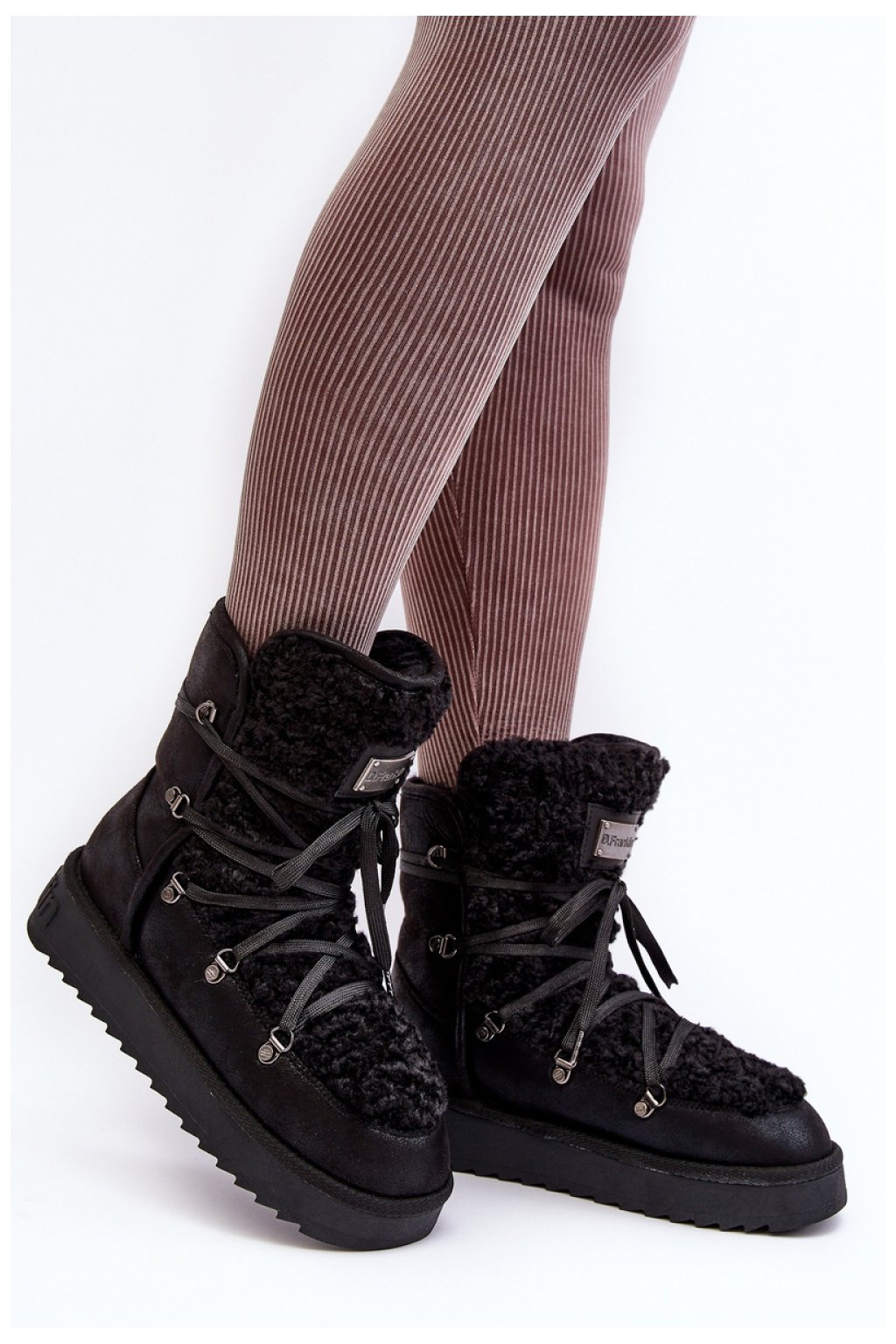 Dámské sněhule z vysoce kvalitní nepromokavé tkaniny z mikrovlákna. Osazené na silné protiskluzové podrážce. Vnitřní a přední strana podšitá syntetickou kožešinou. Tento model je určen pro nejchladnější dny. Sněhule jsou nazouvací s přídavným vázáním. Veganské provedení.