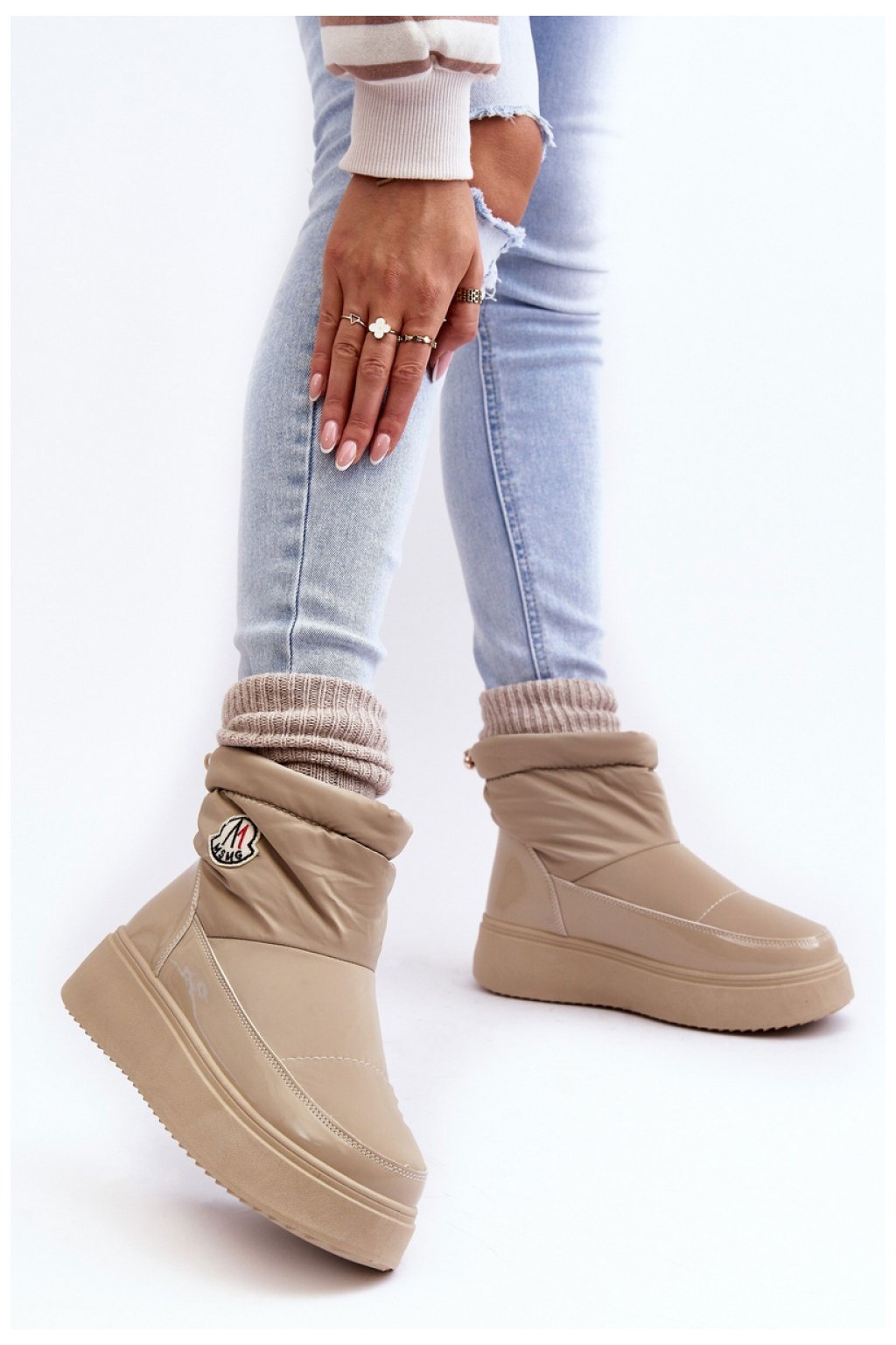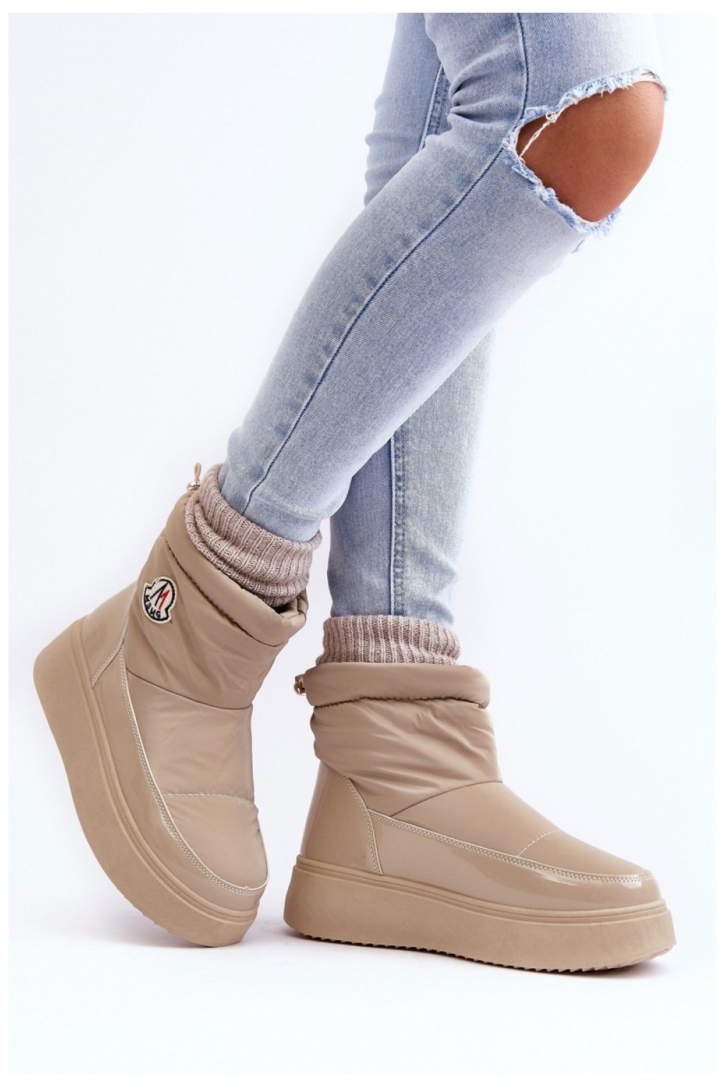 Klasické dámské sněhule vyrobené z kombinace textilu a ekologické kůže. Stojí na platformě. Vnitřek podšitý silnou kožešinou. Nazouvací model se svrškem v délce nad kotníky. Lemování v horní části svršku. Ideální pro ty, kteří ocení pohodlí a teplo v chladných dnech! Ty prostě musíte mít!