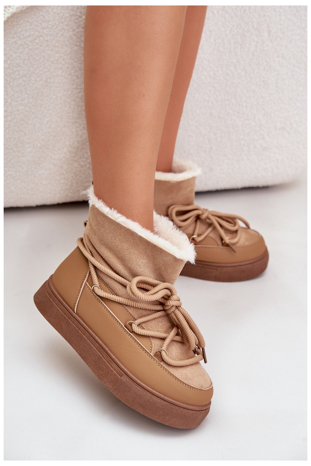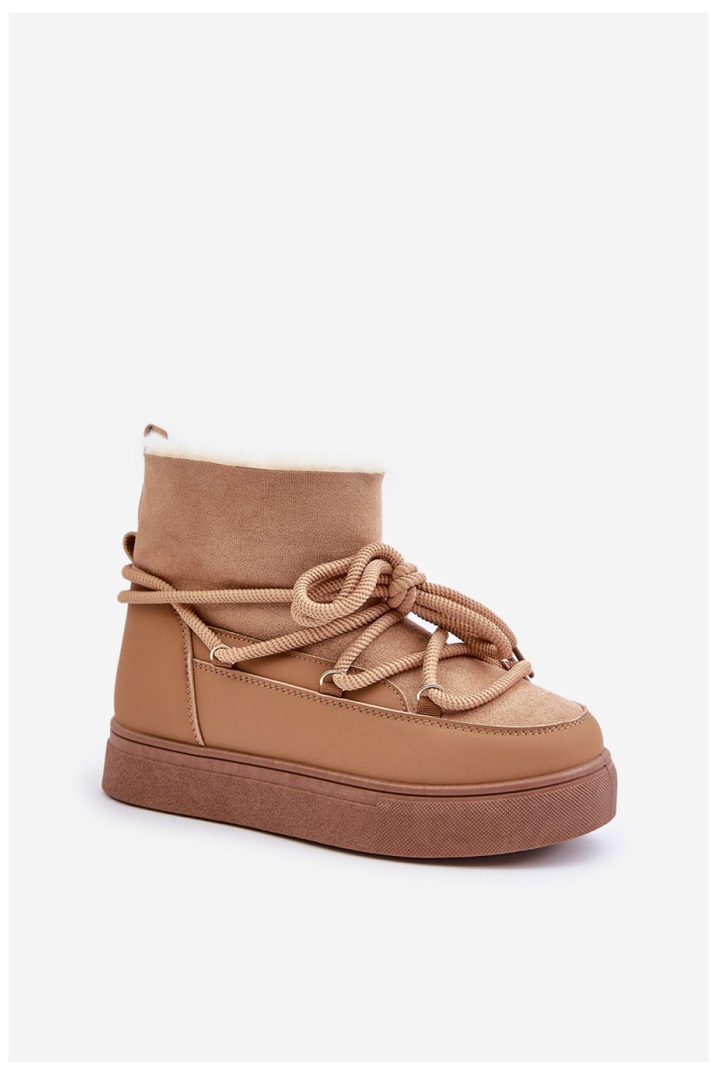 Sněhule pro ženy vyrobené z kombinace eko semiše a eko kůže. Díky platformě získáte několik dalších centimetrů a ochráníte své nohy před zimou. Model se nasazuje. Vnitřek je vyztužen kožešinou. Ideální na dlouhé zimní procházky!