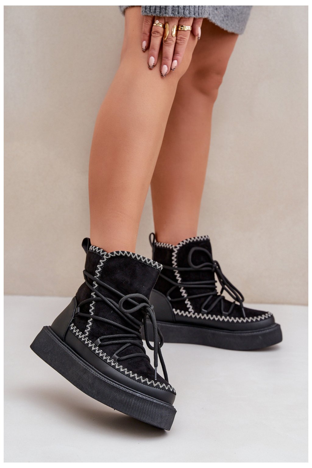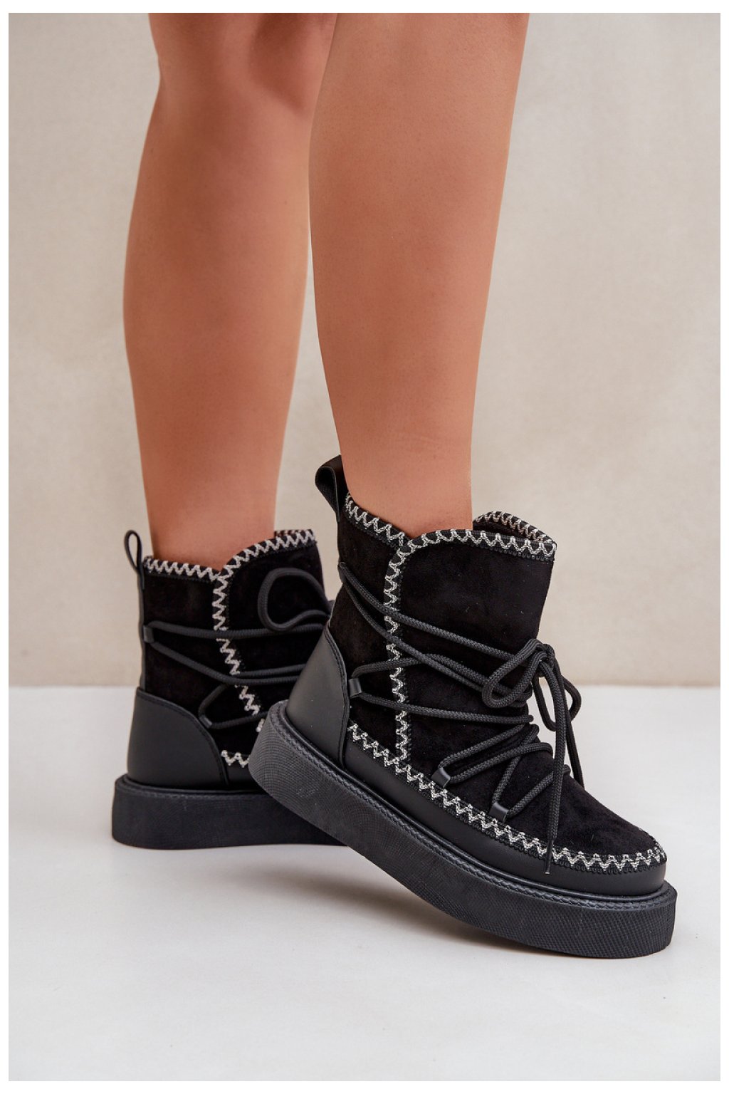 Dámské sněhule na platformě jsou kombinací pohodlí a stylu, ideální pro chladné dny. Model se vyznačuje půvabnou výšivkou na svršku, která mu dodává jedinečný charakter. Vnitřní část je zateplená přikrývkou na boty, která účinně chrání nohy před chladem. Praktické, teplé a módní, ideální volba pro zimní procházky.