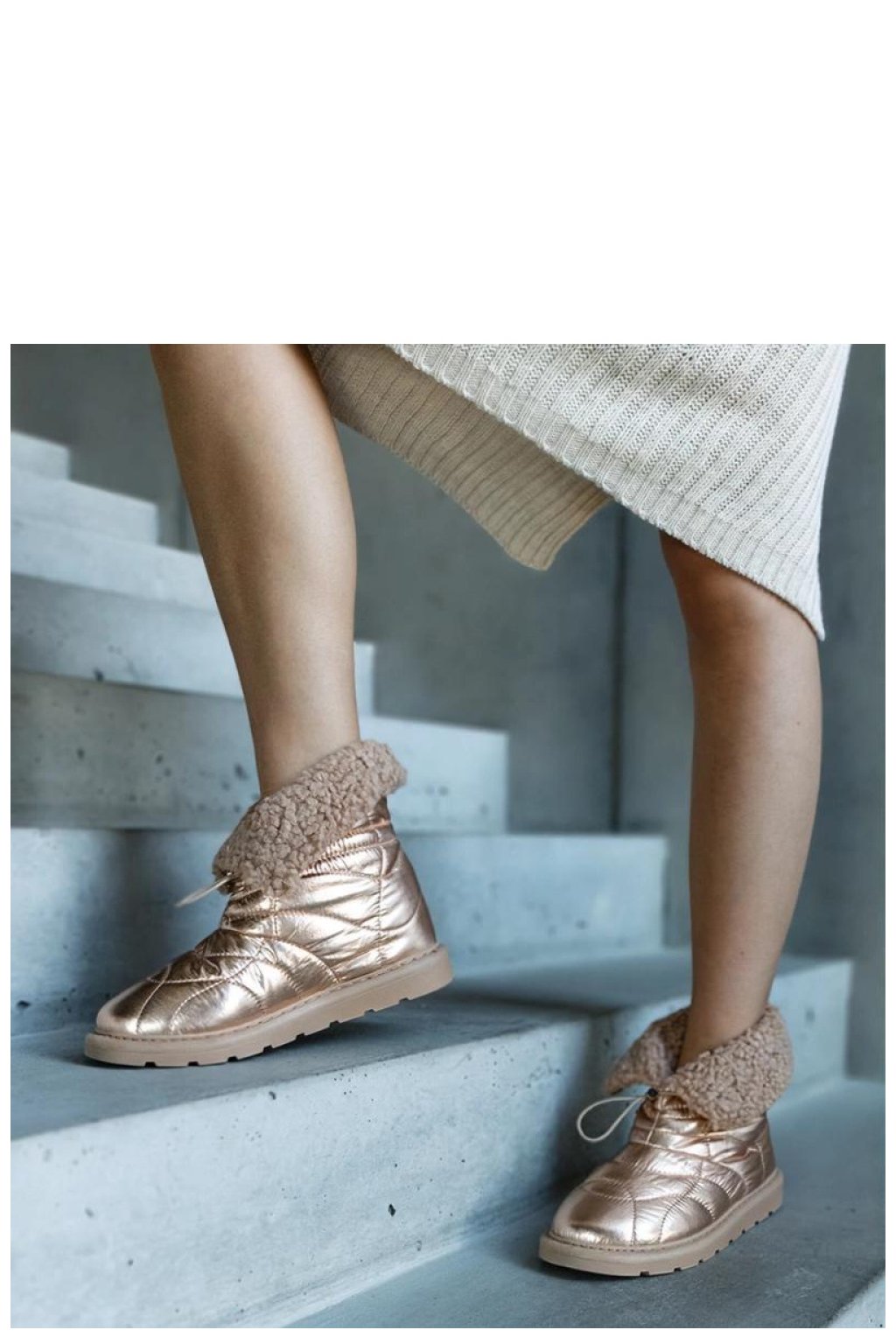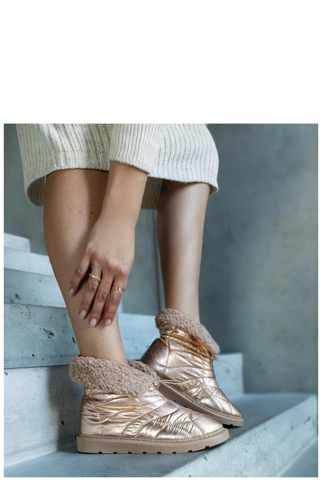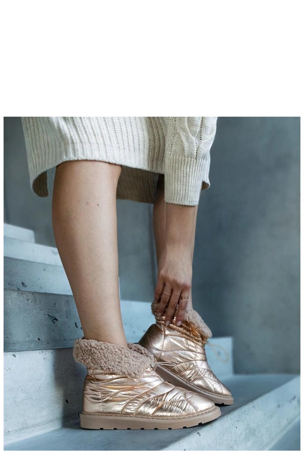 Zlaté zateplené sněhule s lemováním Caellita jsou ideální obuv pro ty, kteří ocení moderní styl a pohodlí. Jejich módní vzhled s kulatou špičkou a platformou poskytuje stabilitu na zasněžených ulicích a dodatečné zateplení interiéru udržuje nohu teplou i v nejchladnější dny. Zlaté detaily přidávají eleganci a skvěle doplňují každý zimní outfit. Vyrobené z látky, mají béžovou gumovou podrážku a uzavírání na lemování, což je dělá nejen stylovými, ale také praktickými. Ideální na podzimní a zimní dny!