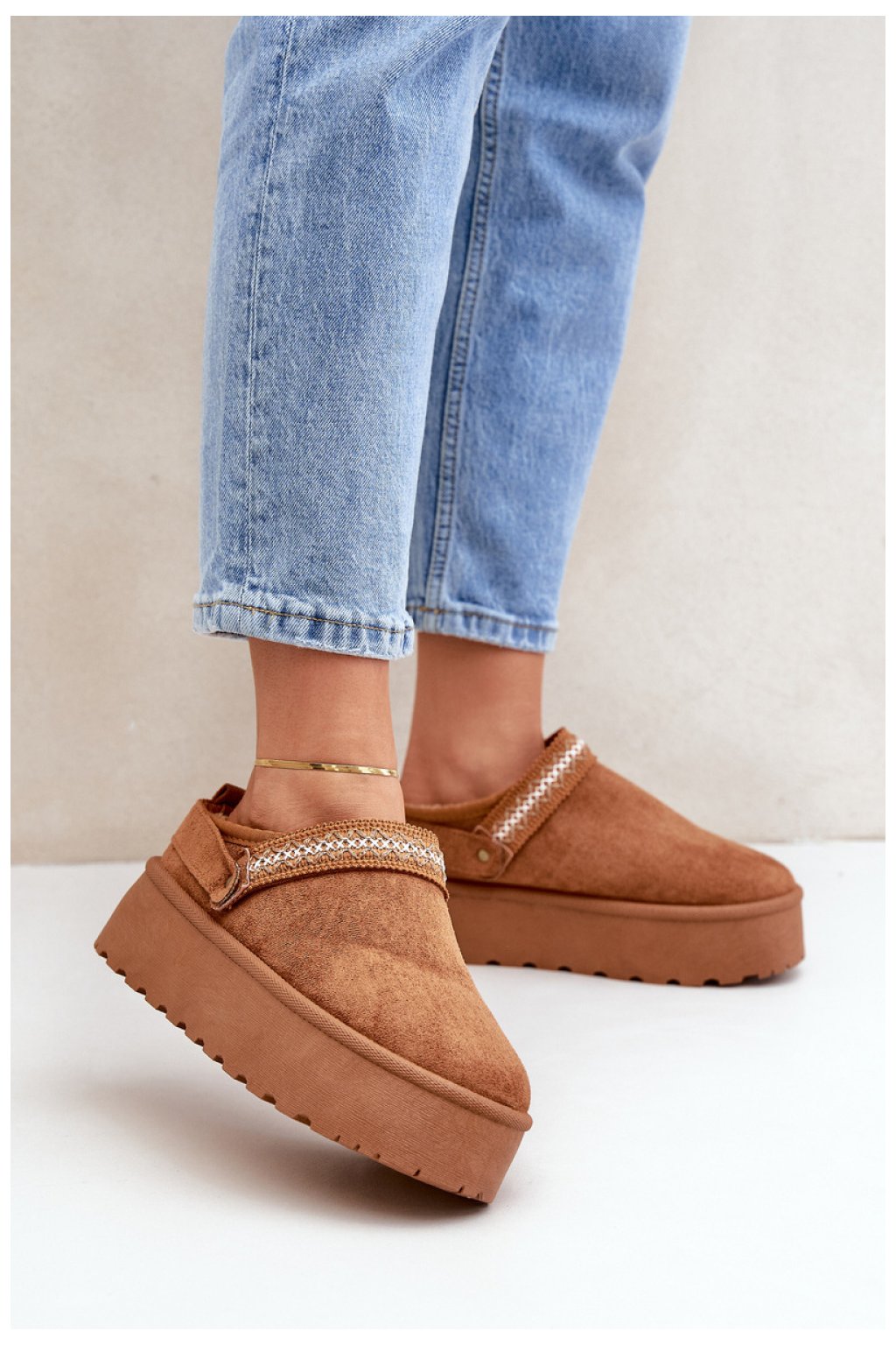 Stylové sněhule vyrobené z ekosuede jsou skvělou volbou na chladnější dny. Upevněné na platformě. Pásek vzadu na botě zvyšuje stabilitu chodidla. Vystlané měkkým, tlustým kožíškem. Vrchní části boty zdobí vyšívaný vzor, který jim dodává zvláštní kouzlo. Tento mimořádně stylový střih byste měla mít ve své skříni!