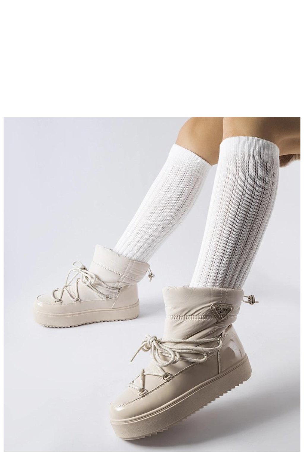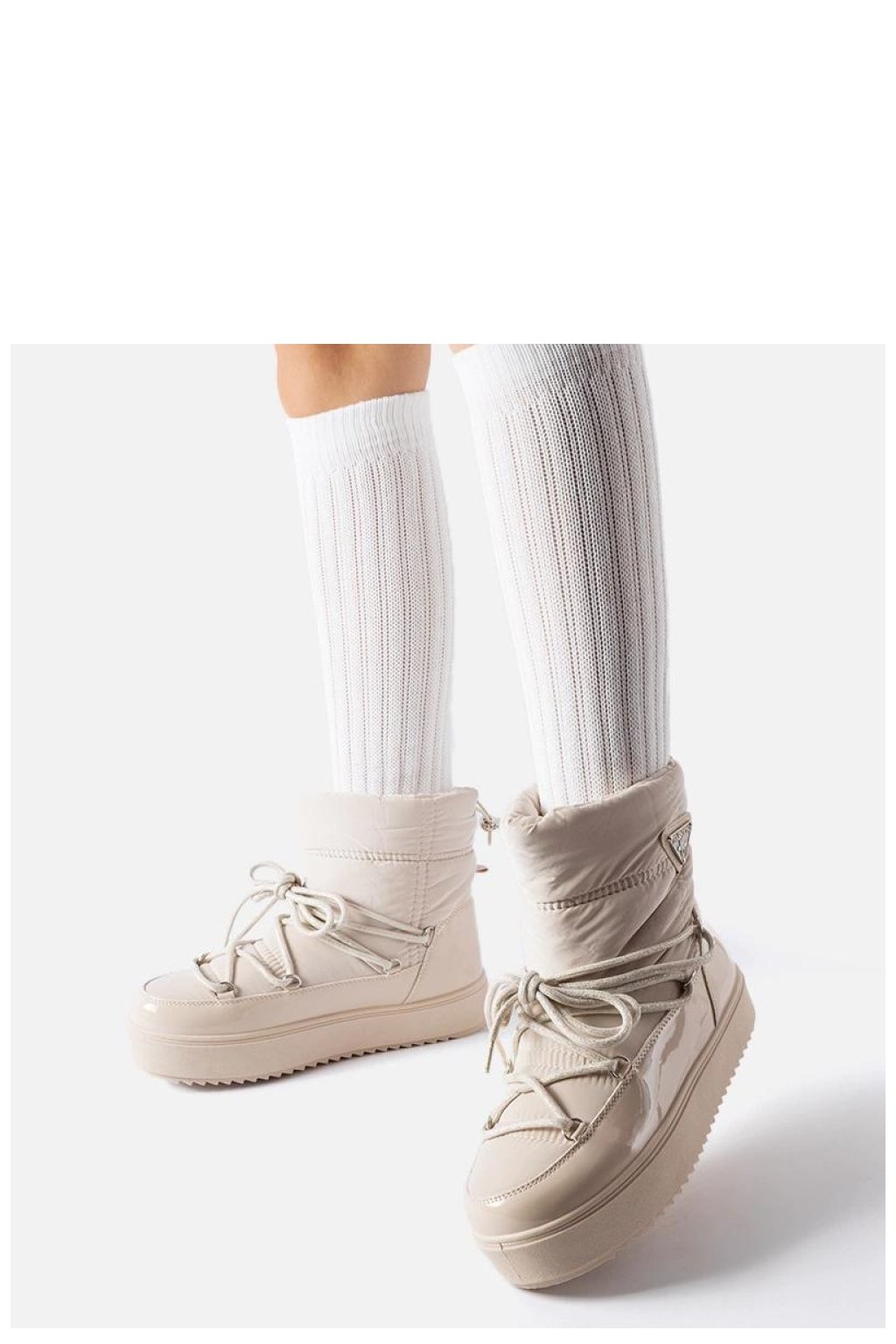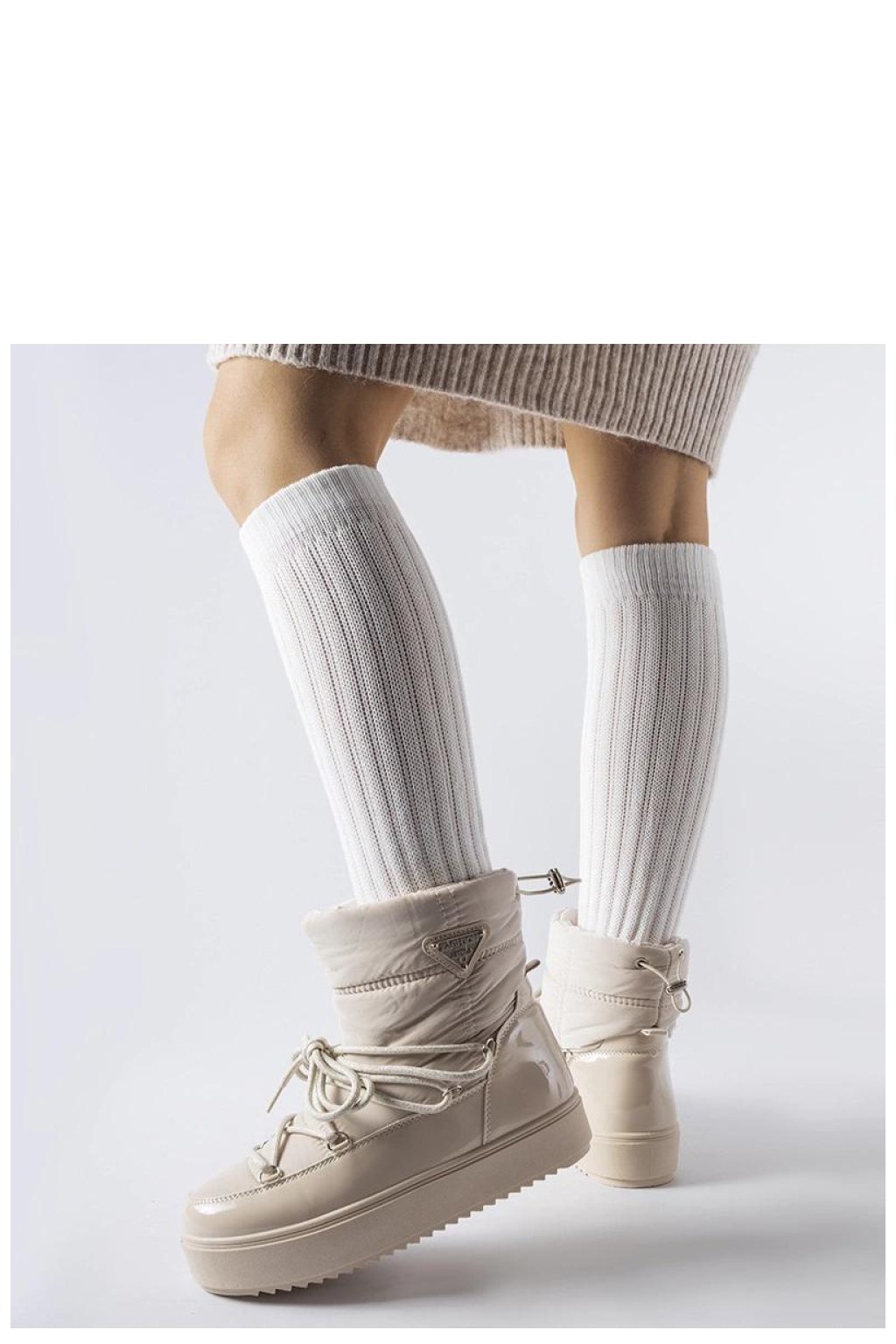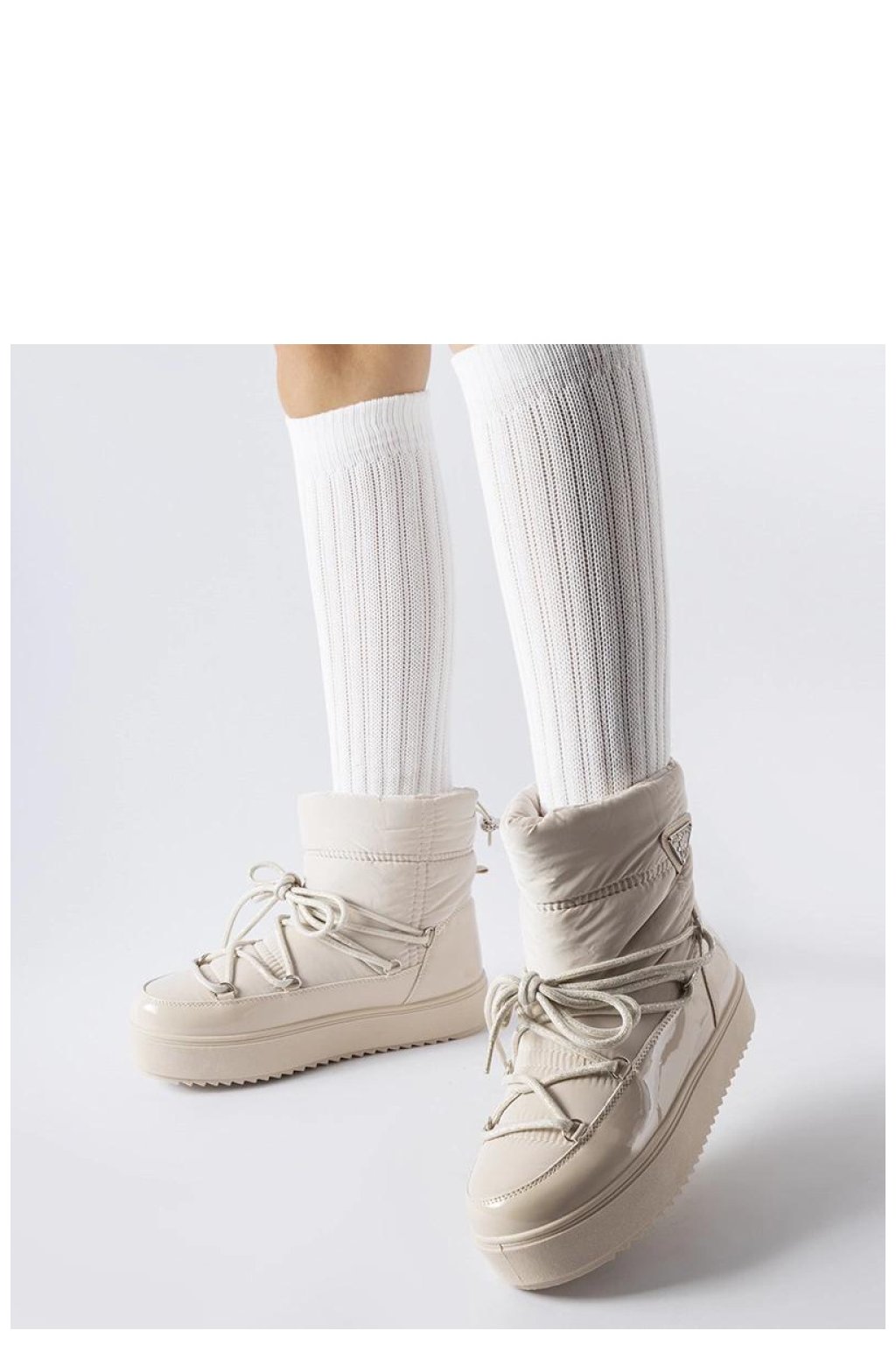 Béžové zateplené sněhule s gumovou páskou Oslavia jsou ideální obuv pro mladé lidi, kteří si cení módního vzhledu a pohodlí. Jejich kulatý špičatý tvar poskytuje volnost pohybu a zároveň chrání nohy před chladem a vlhkostí. Boty mají inovativní systém na platformě, který zvyšuje pohodlí při nošení. Vyšší model nad kotníkem zaručuje ochranu před zimními podmínkami, ideální pro ty, kteří preferují sportovní styl. Teplé vnitřní prostředí s speciální vložkou udržuje nohy teplé i v nejchladnější dny. Vyrobené z gumy jsou odolné proti vlhkosti a trvanlivé. Béžové zateplené sněhule s gumovou páskou Oslavia jsou kombinací pohodlí, stylu a funkčnosti, ideální na nošení každý den v těžkých zimních podmínkách. Zateplené s klínovým zipem mají béžovou podrážku a jsou skvělou volbou na nadcházející podzim/zimu.