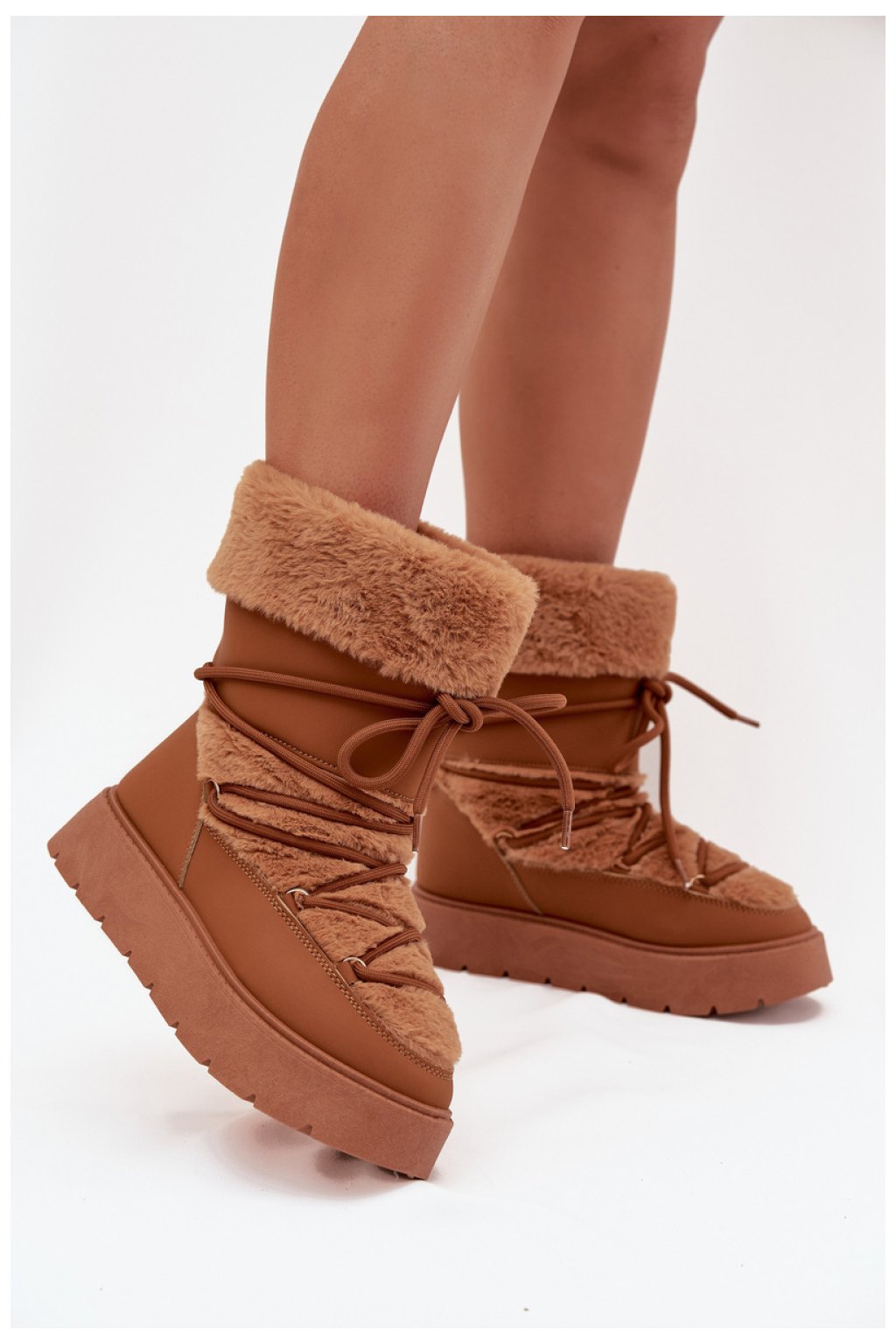 Sněhule na platformě pro ženy jsou spojením módy a funkčnosti na zimní dny. Vyrobené z ekokože. Teplý kožíšek jak zvenku, tak uvnitř bot, zaručuje pohodlí a teplo i v nejchladnější dny. Šněrování umožňuje lepší přizpůsobení. Ideální na zimní výlety, kombinují stylový vzhled s pohodlím a ochranou před chladem.