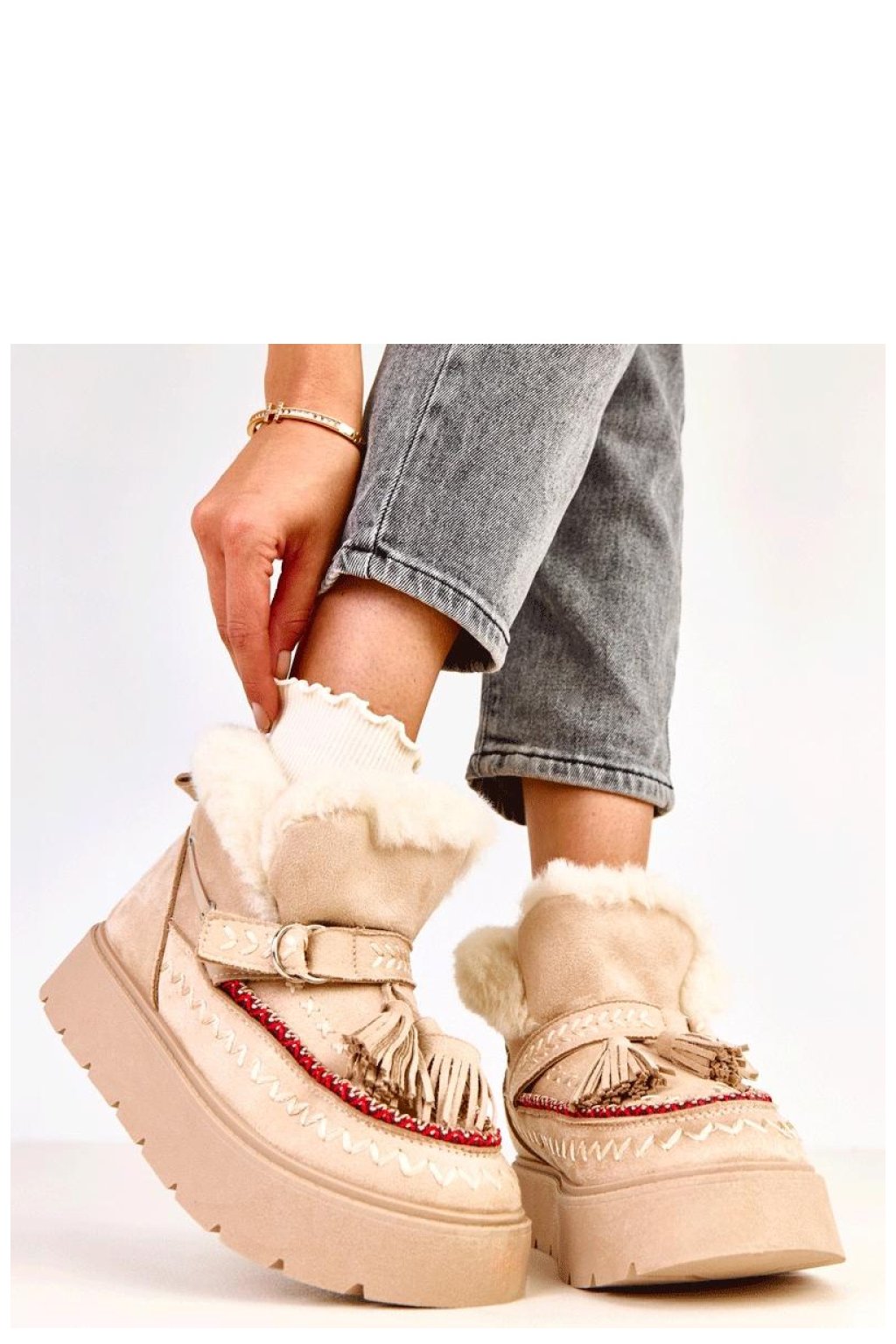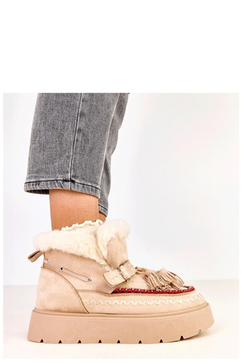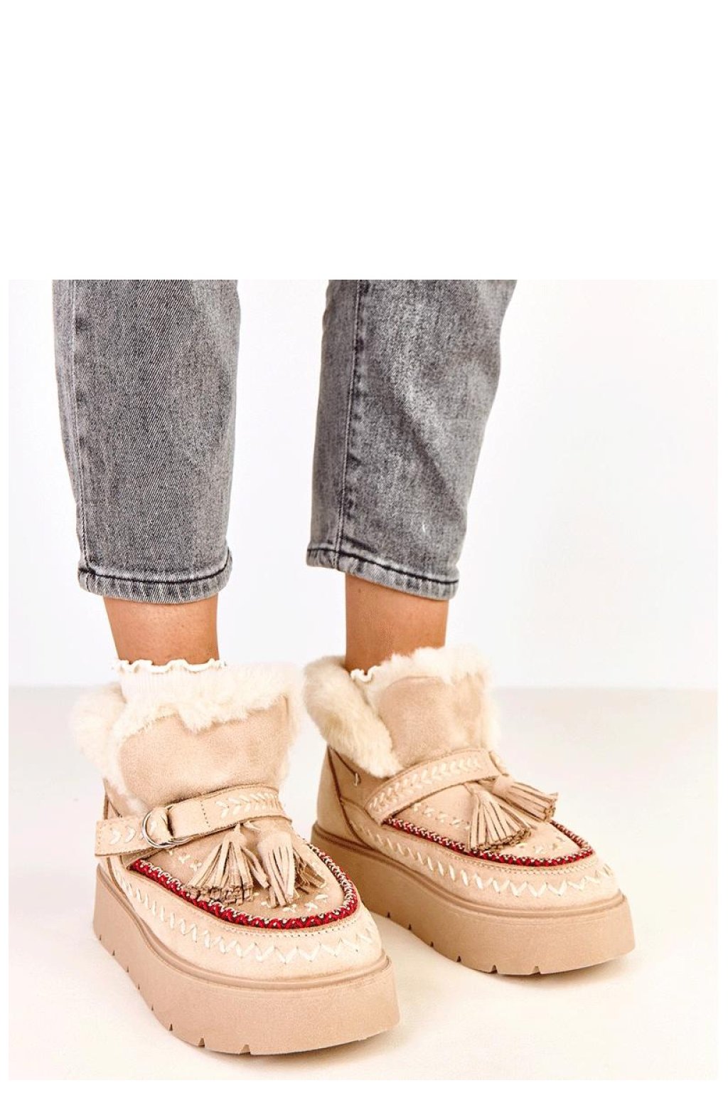 Sněžné boty s ozdobnými řasami jsou kombinací pohodlí, tepla a stylového vzhledu ideální na zimní dny. Vyrobené z ekologického semiše, působí elegantně a zároveň jsou odolné vůči každodennímu používání. Model má kulatou špičku a je vyplněný kožešinou, díky čemuž poskytuje tepelný komfort i v nejchladnější dny. Stylové ozdobné řasy dodávají botám charakter a lehkost, dodávají jim módní, ležérní vzhled. Platforma o výšce 4 cm stabilizuje postavu, a vložka z syntetického kožešinu zaručuje další teplo a měkkost. Díky slip-on konstrukci jsou boty pohodlné a rychlé na nazouvání, ideální do každodenních zimních stylizací.