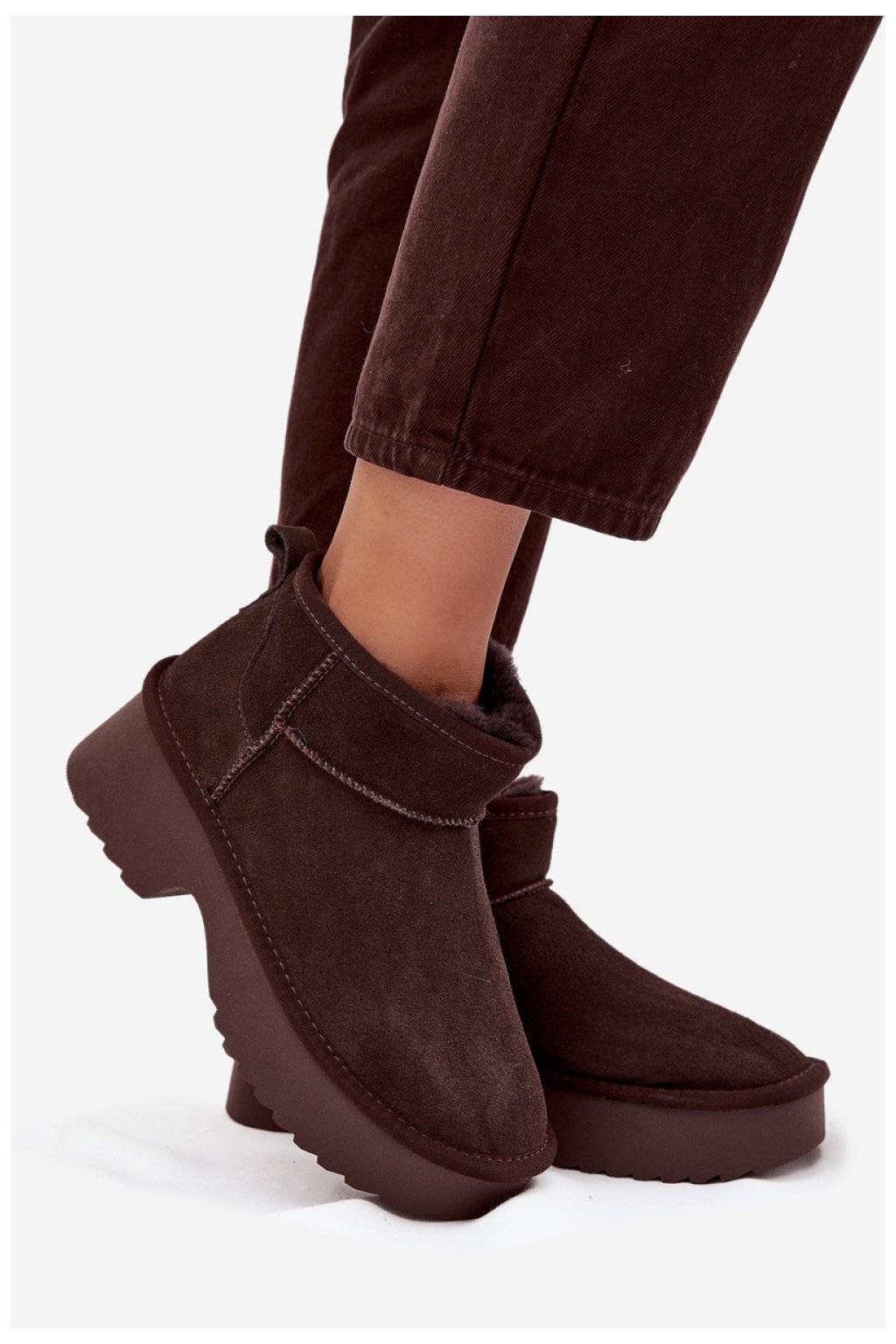 Sněhule pro ženy vyrobené z přírodního semiše jsou stylovým návrhem na zimní dny. Umístěné na platformě poskytují stabilitu a pohodlí při chůzi, zároveň účinně izolují před chladem. Vnitřek bot byl vybaven kožešinou, která zaručuje teplo a pohodlí v mrazivých dnech. Moderní střih zajišťuje, že sněhule skvěle zapadají do aktuálních trendů. Ideální volba pro ženy, které ocení styl a pohodlí ve zimních outfitech.