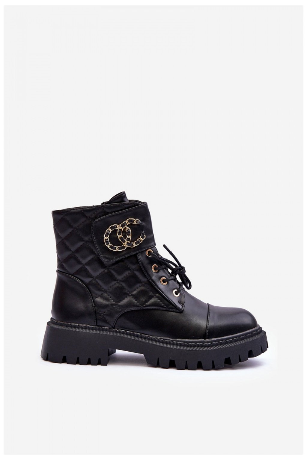 Dámské boty na plochém stabilním podpatku a platformě. Vyrobeny z ekologické kůže. Model se zipem a přídavným šněrováním. Na svršku je prošívání a silný pásek s ozdobou. Podpatek je vyztužený a vnitřek je zateplený dekou na boty. Skvělý model pro podzimní a zimní styling!