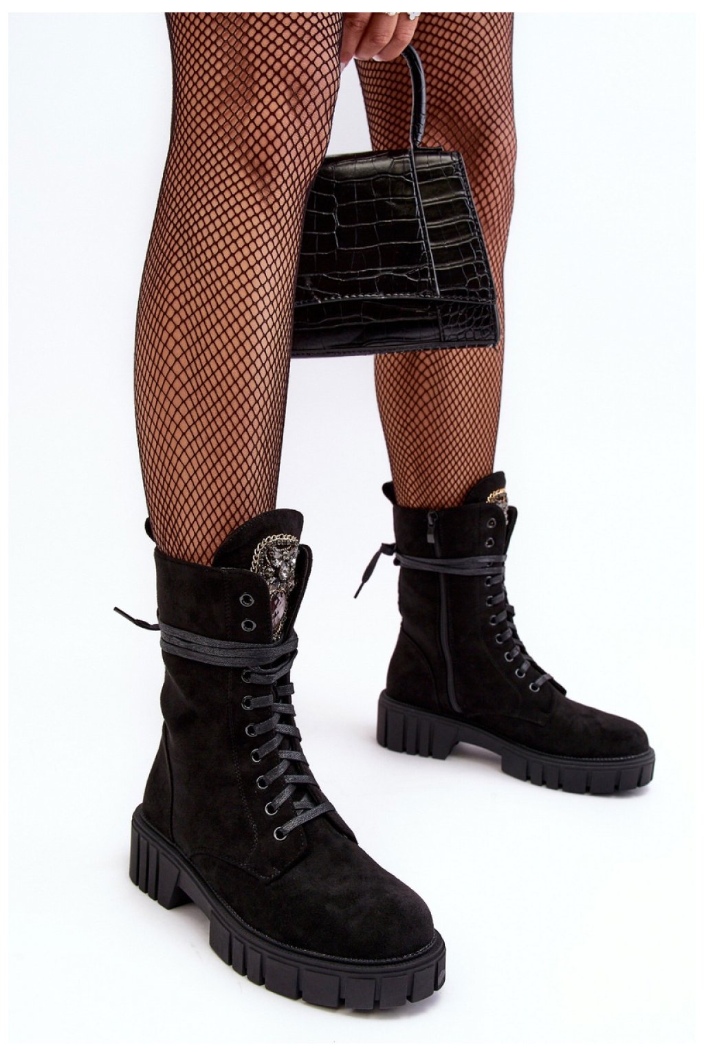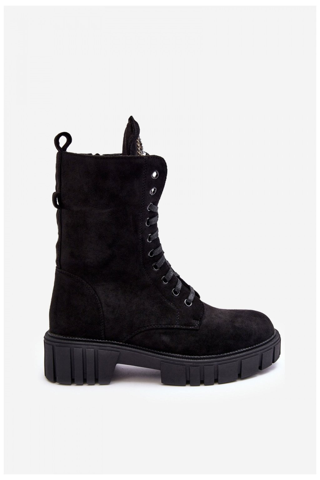 Dámské boty z ekologického semiše a zateplené přikrývkou na boty. Svršek za kotníkem. Šněrování vpředu a další zip na boku svršku. Osazení na plochém podpatku a platformě. Šperková ozdoba na jazyku. Jsou to skvělé boty na podzim a zimu! Budou se hodit k mnoha outfitům.