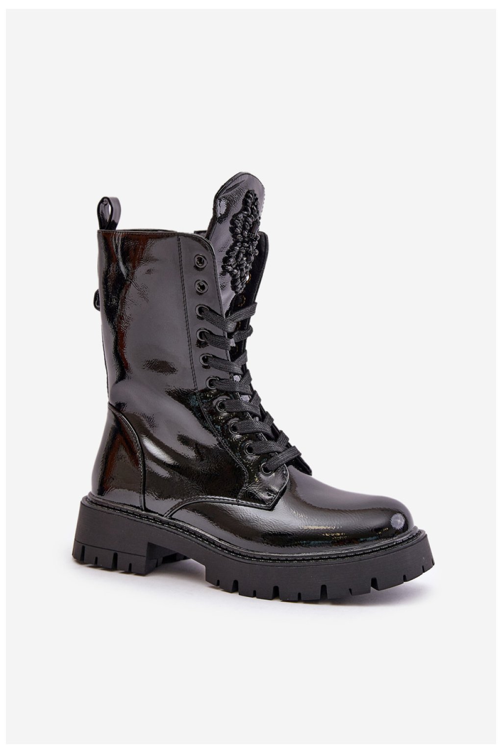Lakované kozačky workery pro ženy jsou skvělým návrhem na chladnější dny. Zateplené obuvní podšívkou zajišťují teplo a pohodlí. Model kombinuje zip s klasickým šněrováním, co jim dodává charakter a usnadňuje přizpůsobení se noze. Stylový, lakovaný vzhled zdůrazňuje jejich moderní design, díky čemuž jsou ideálním doplňkem jak k ležérním, tak k odvážnějším stylizacím.