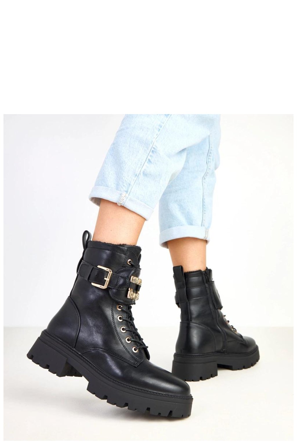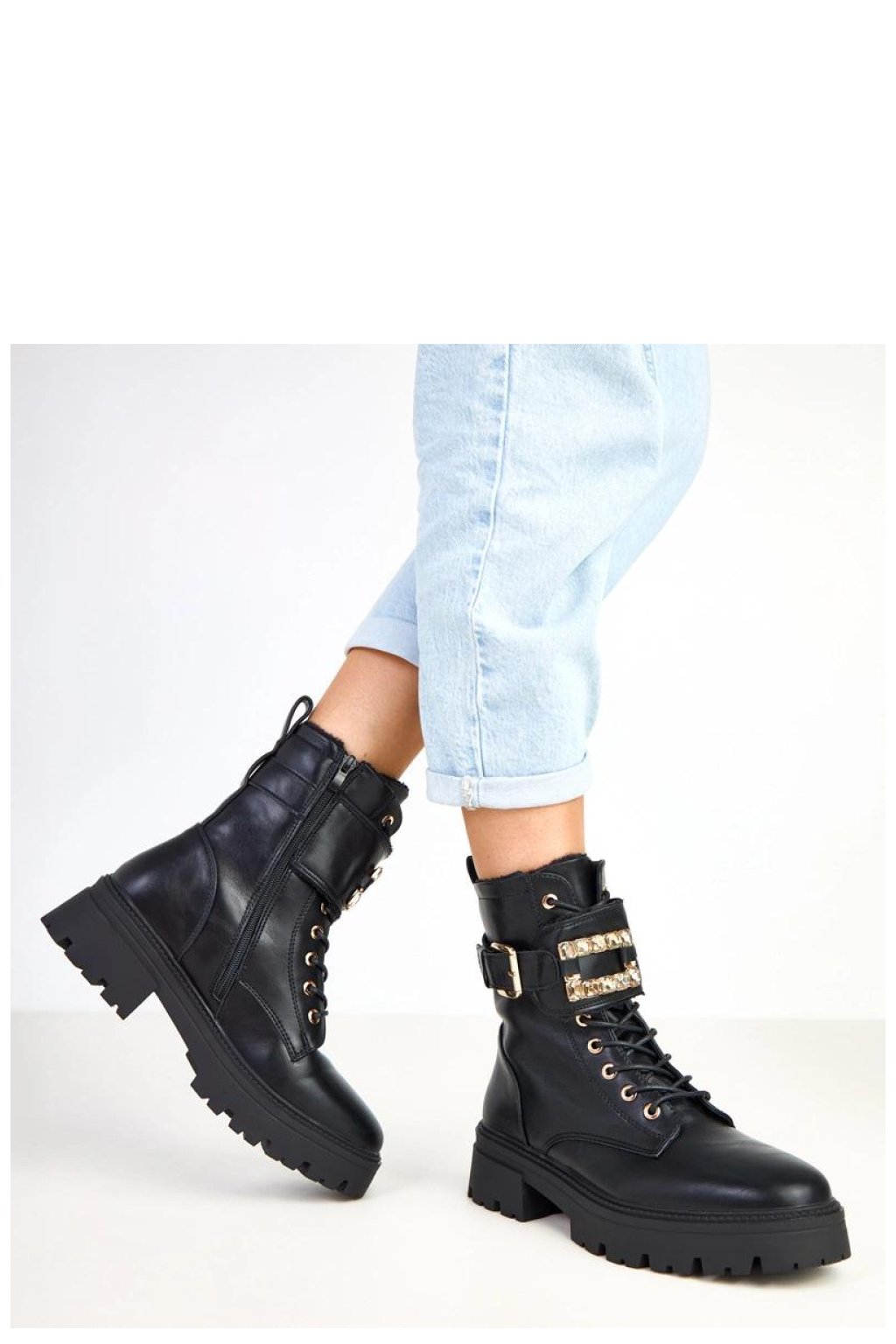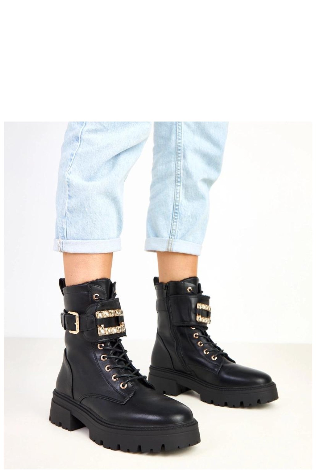 Moderní dámské kozačky vyrobené z vysoké kvality ekologické kůže, které přitahují pozornost díky efektnímu zdobení z třpytivých kamenů. Model má klasické šněrování spojené s praktickým zipem, co usnadňuje obouvání a přizpůsobení noze. Boty mají kulatou špičku, 17 centimetrový svršek a stabilní plochý podpatek s pevnou výškou 4,5 centimetru, který zajistí pohodlí a módní vzhled. Vnitřek je vybaven měkkou látkou, co zaručuje pohodlí při každodenním nošení. Jsou to stylové kozačky s nádechem lesku, ideální pro ženy, které ocení pohodlí spojené s odvážným, moderním designem.