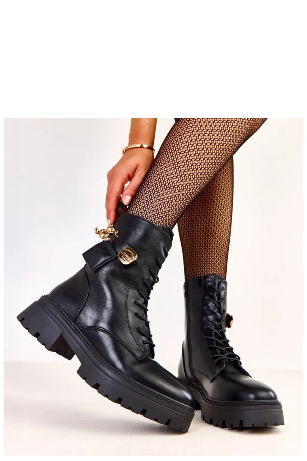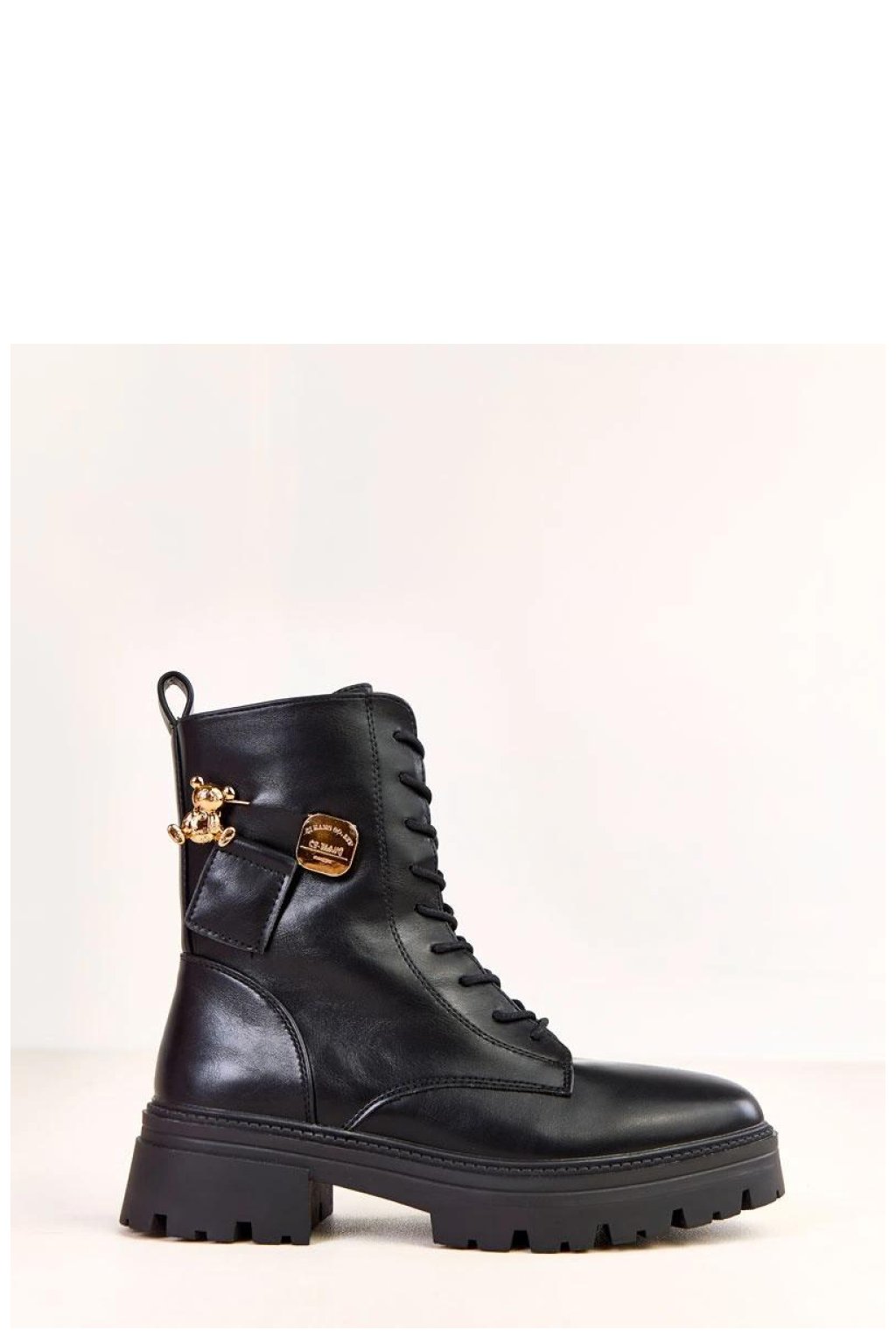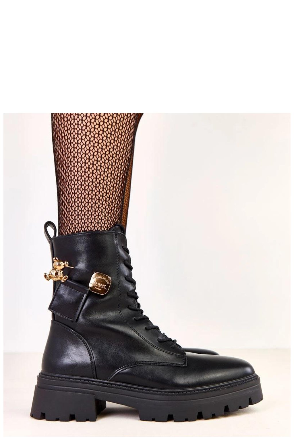Moderní a pohodlné dámské vysoké boty, které skvěle kombinují moderní styl s pohodlím nošení. Vyrobené z vysoké kvality ekologické kůže, vypadají elegantně a jsou snadné na údržbu. Model má kulatou špičku, zateplení, které poskytuje teplo v chladnějších dnech, a 17 cm vysoký svršek, který se ideálně přizpůsobuje noze. 5 cm vysoký podpatek přidává decentní zvýšení, zachovávající stabilitu a pohodlí. Boty jsou vybaveny šněrováním vpředu a bočním zipem, který usnadňuje obouvání. Celkovému šarmu dodává ozdobný zlatý přívěsek s motivem medvídka, přinášející moderní, trochu bižuterní akcent. Vložka z umělé hmoty zaručuje trvanlivost a pohodlí nošení. Je to ideální volba pro ženy, které oceňují styl, pohodlí a originální detaily, které dodávají charakter každodenním outfitům.
