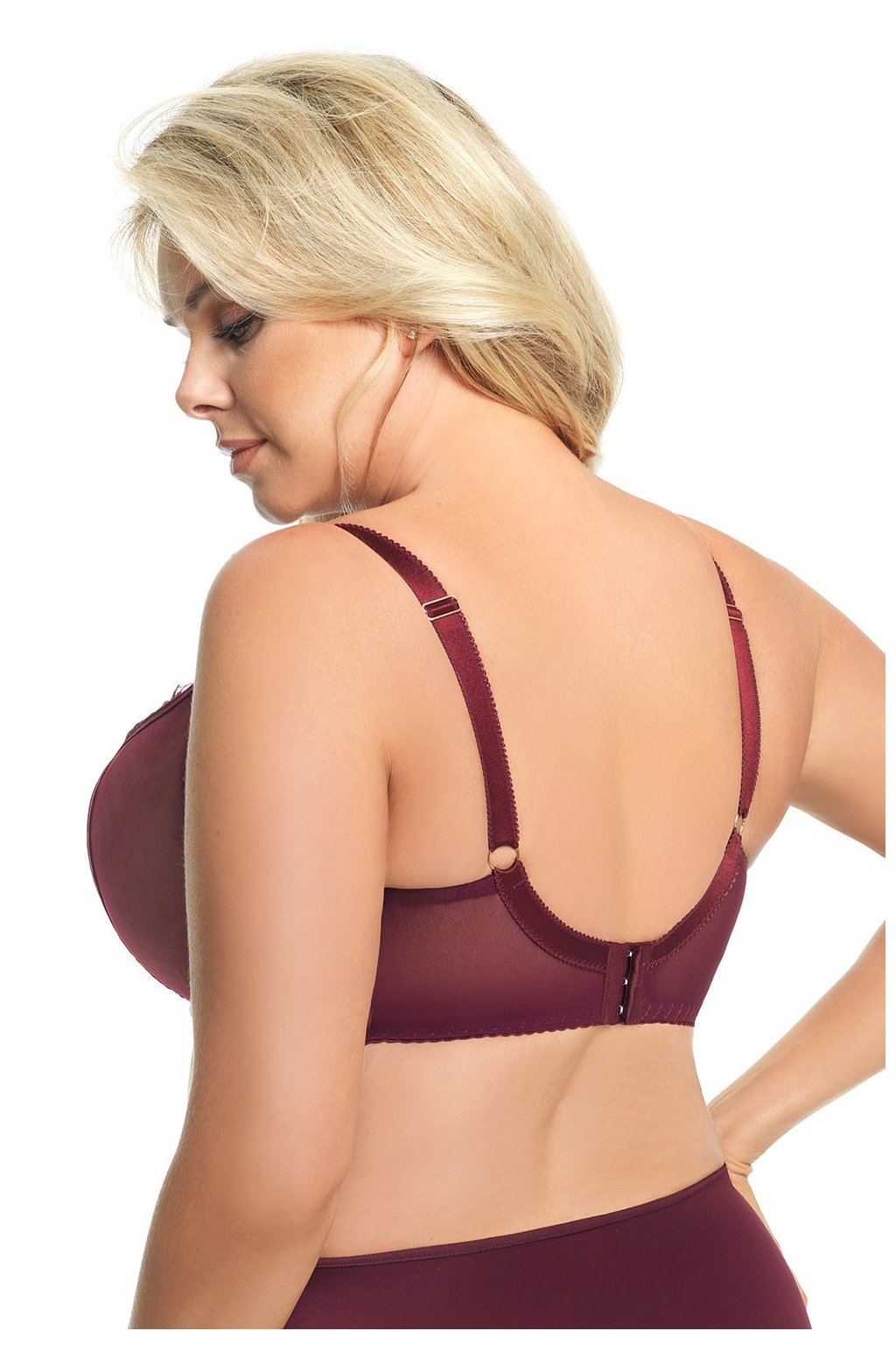 Seznamte se s nejnovější verzí známé podprsenky Paradise K496, tentokrát ve vínové barvě! V měkkém provedení, s podšitím (spodní a boční část), určené pro střední a velká prsa. Jsou vyrobeny z dvojitého síťovaného tylu s ozdobným páskem na výstřihu, doplněné elegantní vínovou krajkou. Podprsenka nádherně shromažďuje prsa z boků, umně je tvaruje a půvabně je prezentuje ve výstřihu. Šířka řemínku se liší v závislosti na velikosti.