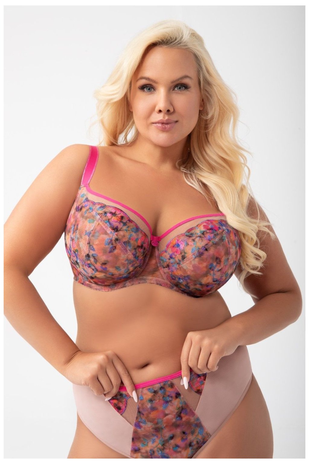 Měkký podprsenka Soft navržený s ohledem na potřeby větších prsů, poskytuje přirozený tvar a pohodlí bez zpevnění. Košíčky s dolními a bočními kosticemi účinně podpírají prsa a jemně je shromažďují z boků směrem ke středu dekoltu, zdůrazňujíce ženskou siluetu. Lemování stříhanou páskou a použití technologie plochých švů zajišťuje, že podprsenka není viditelná pod oblečením a je příjemná k pokožce. Model je vyroben z měkké, prodyšné látky, zdobený jemným vyšíváním a síťovými vložkami, které mu dodávají lehkost a eleganci. Nastavitelné, neodnímatelné ramínka a možnost nastavení obvodu umožňují ideální přizpůsobení. Všechny ozdobné doplňky jsou bez niklu. Podprsenka se zapíná na zádech, dodávána v estetické krabici, stylové a funkční řešení na každý den.