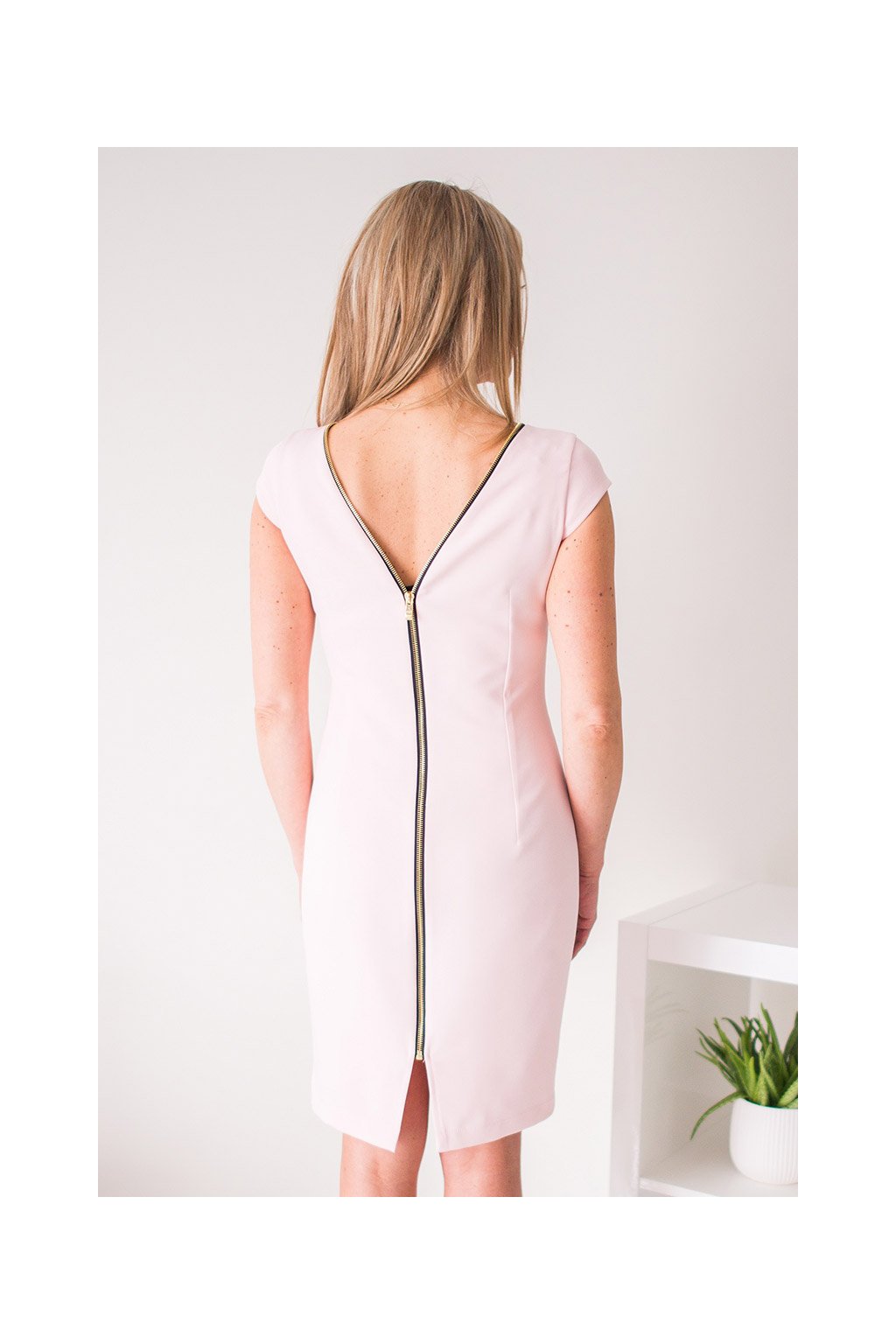 Šaty z měkkého úpletu. Jednoduché a klasické, ale s drápkem. Elegantní zip ve zlaté barvě na zadní straně dělá model jedinečným. Jemné záševky maskují nedokonalosti postavy a zároveň ji zdůrazňují.Velikost | Délka | Obvod beder | Obvod prsou | Obvod v pase |