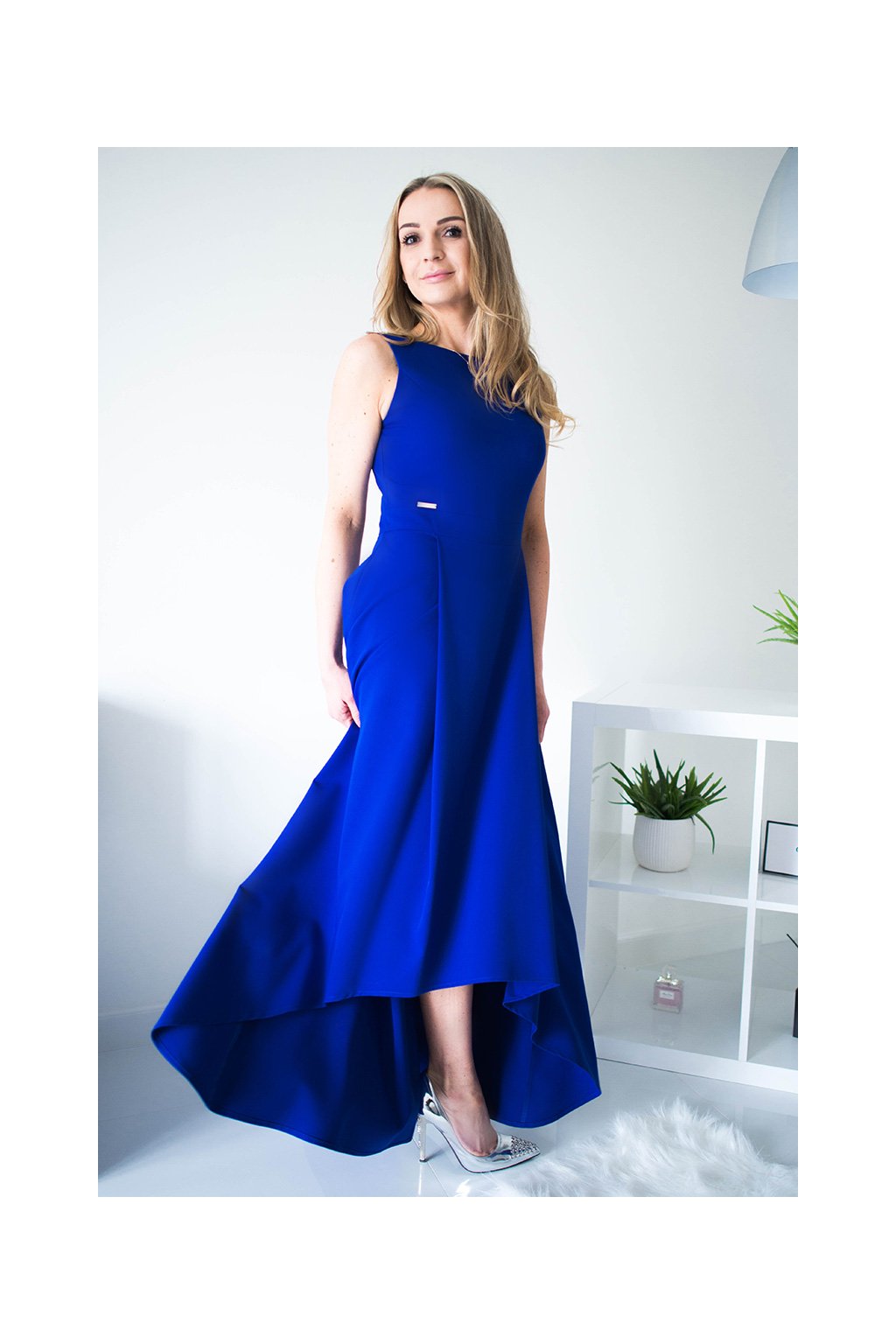 Jednoduché, ale elegantní šaty se zipem na zádech. Šaty na podšívce, s vypasovaným horním dílem odstřiženým v pase. Šaty v délce maxi, vzadu delší, vpředu kratší. Ideální pro mnoho příležitostí.