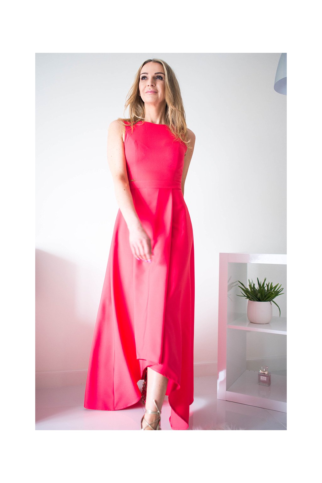 Jednoduché, ale elegantní šaty se zipem na zádech. Šaty na podšívce, s vypasovaným horním dílem odstřiženým v pase. Šaty v délce maxi, vzadu delší, vpředu kratší. Ideální pro mnoho příležitostí.