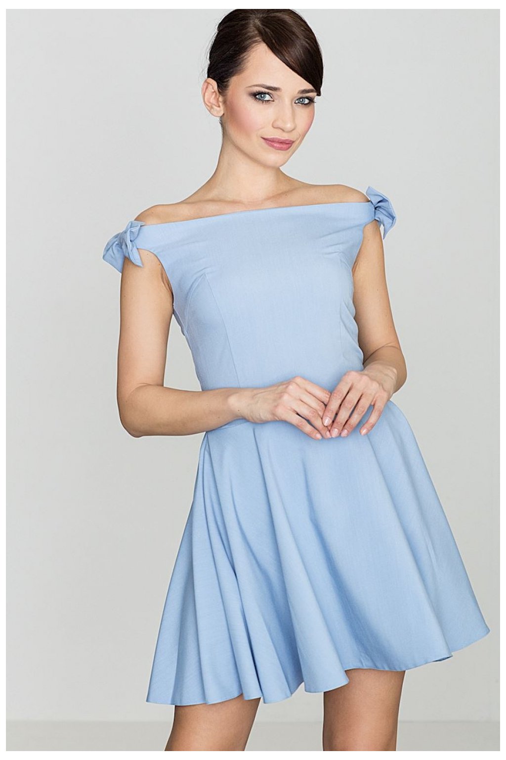 Střih se dokonale přizpůsobí postavě a zvýrazní ženské tvary. Top s pěkně tvarovaným výstřihem bez rukávů, který je na ramenou nahrazen mašličkami dodávajícími šatům okouzlující styl.