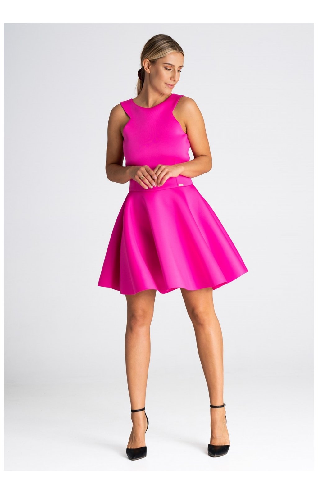 Šaty z elastické tkaniny, která se přizpůsobí tělu. Přiléhavý horní díl, rozšířený spodní díl. Zapínání na zádech na krytý zip. Ideální pro mnoho příležitostí.