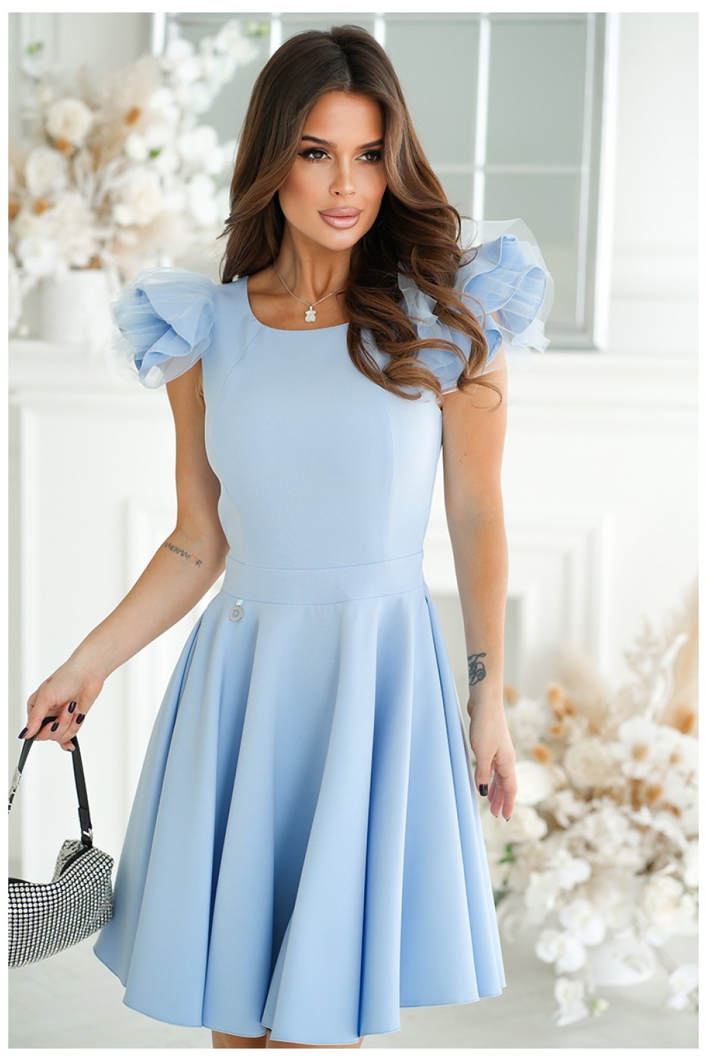 Elegantní šaty s neobvyklými nárameníky. Velmi dobře střižená kreace, která dokonale zvýrazňuje pas. Šaty se zapínají na krytý zip. Model vhodný na neformální večírky i elegantnější párty. K dispozici ve stylových barvách.