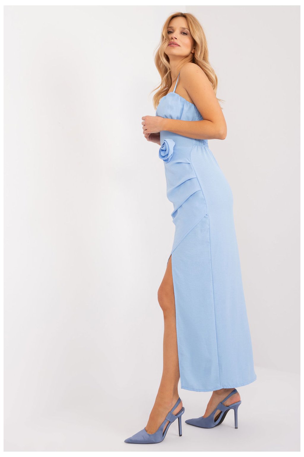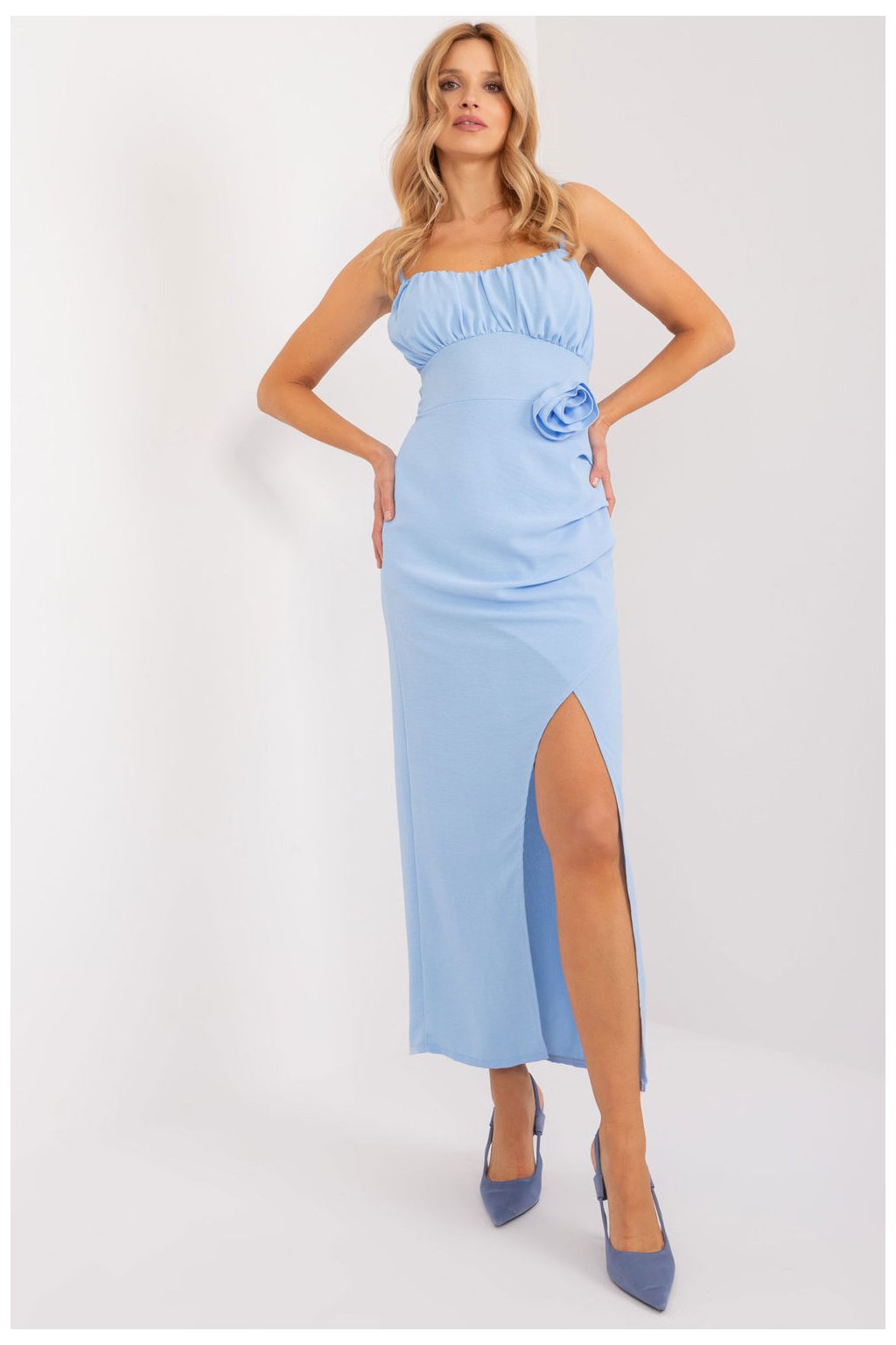 Tyto tužkové šaty jsou typickým příkladem letní elegance a sofistikovaného designu. Jsou ideální na elegantní vycházky i večírky a dodají šmrnc každé příležitosti. Neobvyklým detailem je látková ozdobná květina umístěná v úrovni pasu, která šatům dodává jemnost a romantiku. Navíc od stehen dolů se táhne ozdobný rozparek, který dodává šatům jemný smyslný nádech, zdůrazňuje ženskou siluetu a dodává jim lehkost. Šaty jsou vyrobeny z hladkého polyesteru s viskózovou podšívkou a zajišťují pohodlné nošení. Jejich midi délka a tenká ramínka zajišťují, že kulatý výstřih je jemně odhalený a zdůrazňuje krk a ramena. Řasení na úrovni prsou a na zádech dodává šatům lehkost a charakter, díky čemuž silueta vypadá obzvlášť žensky a přitažlivě. Tyto šaty jsou ideální volbou pro ženy, které chtějí v létě vypadat úžasně a cítit se sebevědomě, když vyrážejí ven. Díky jejich eleganci a šiku snadno upoutáte pozornost a budete se cítit výjimečně. Řasení s gumičkami na zádech je pružné a usnadňuje oblékání šatů. Délka šatů je uvedena s ramínky a bez nich.