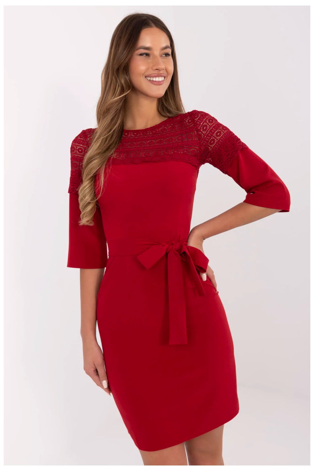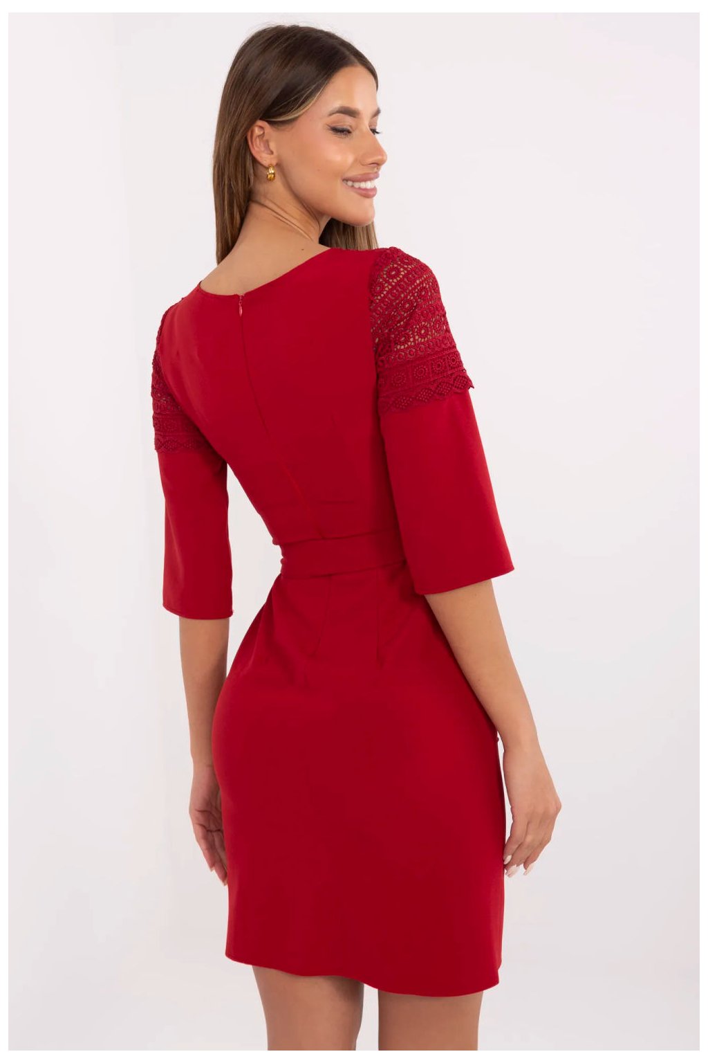 Elegantní koktejlové šaty s úzkým střihem, které zdůrazňují ženskou siluetu. Vyrobené z vysoké kvality směsi bavlny, polyesteru a elastanu, poskytují pohodlí nošení a skvělé přizpůsobení. Ozdobný krajkový výstřih na vrchní části šatů dodává subtilní eleganci, zatímco klasický kulatý výstřih a 3/4 rukávy zaručují skvělý vzhled jak na formální události, tak do práce nebo na večerní výlety. Šaty mají délku před kolena a skrytý zip na zádech, což zaručuje pohodlné nošení. Doplňkový pásek k zapínání zdůrazňuje pas a dodává celkově stylový vzhled. Ideální volba pro ženy, které ocení eleganci a rafinovaný styl.