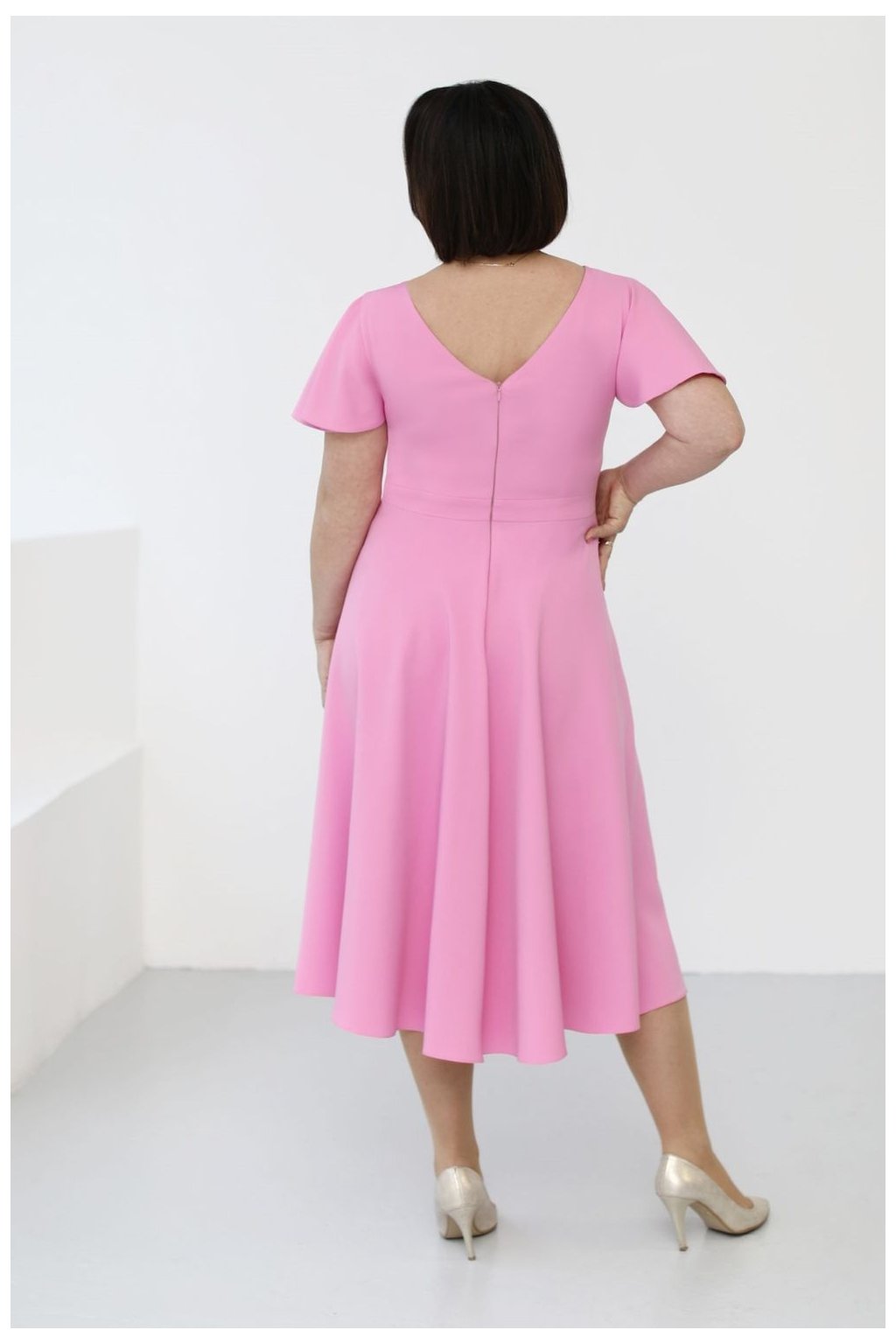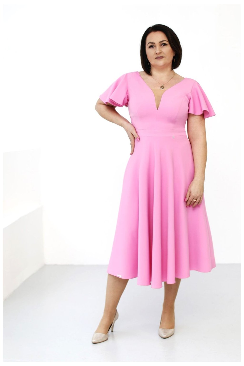 Elegantní midi šaty s diskrétním, zakrytým zipem jsou ideální volbou na speciální příležitosti. Přiléhavý vrch s jemnou síťkou na výstřihu dodává kreaci lehkost a moderní charakter. Vzdušné rukávy a střih zdůrazňující pas dělají siluetu ženskou a elegantní. Délka pod kolena a podšívka zajišťují pohodlí a volnost pohybu, a promyšlený střih dokonale maskuje drobné nedokonalosti postavy. Toto spojení elegance, jemnosti a pohodlí v jednom.