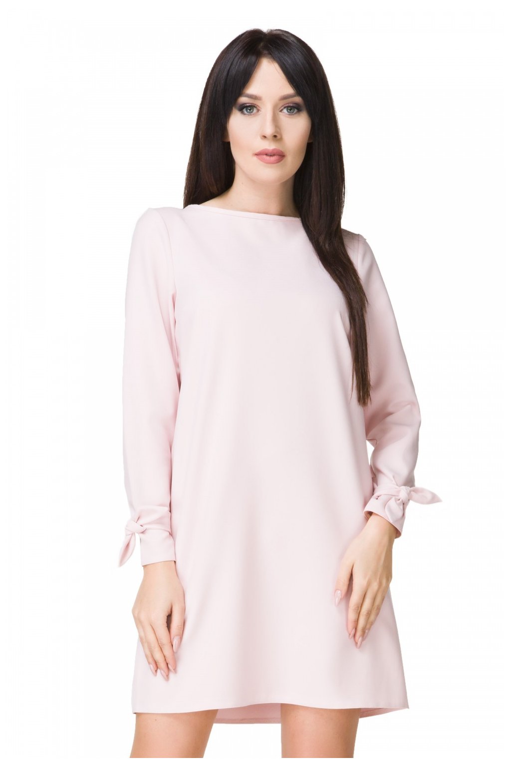 Elegantní mini šaty s mírně trapézovým střihem. Ozdobná očka na zádech s prodlouženým lemem. Ozdobné zavazování na rukávech. Lodičkový výstřih, dlouhé rukávy. Šaty jsou ideální pro každodenní nošení do práce, na zahradní párty nebo jiné rodinné akce.Polyester 95 %
