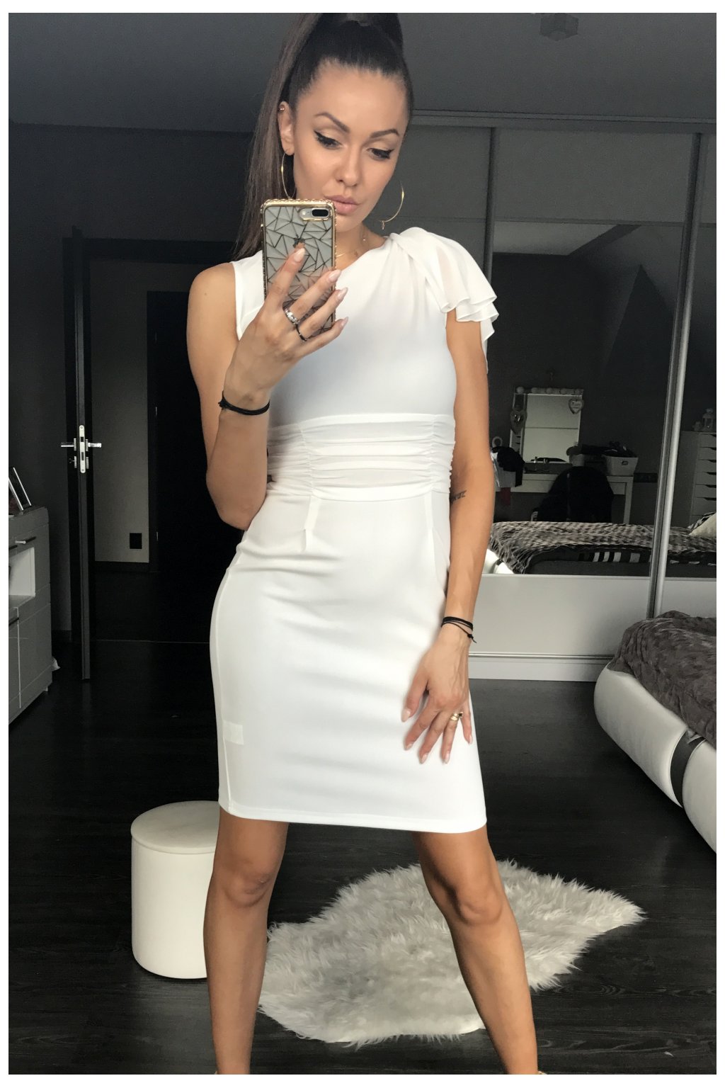 Elegantní šaty s neobvyklými nárameníky. Velmi dobře střižená kreace, která dokonale zvýrazňuje pas. Šaty se zapínají na krytý zip. Model vhodný na…