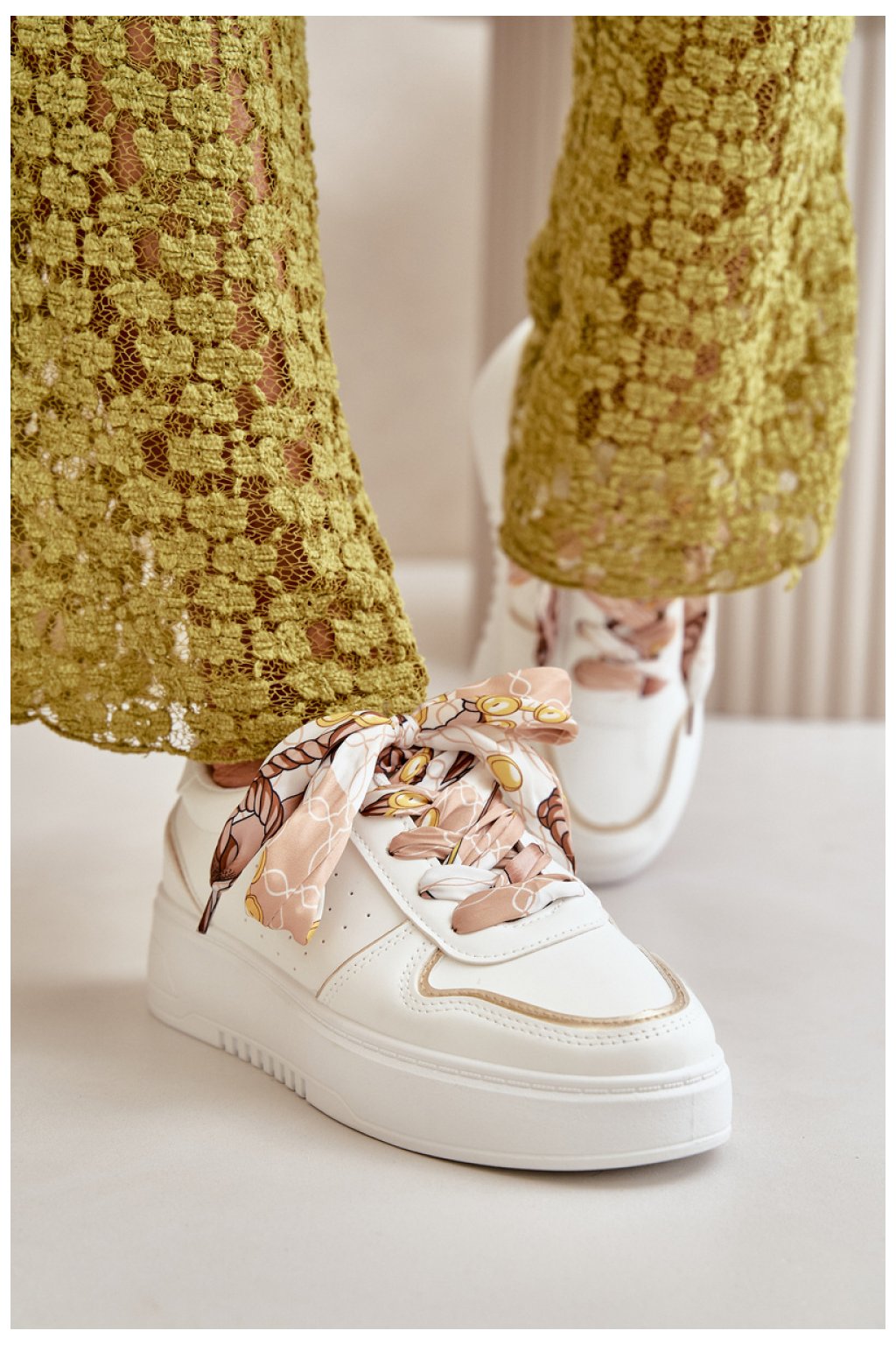 Dámské tenisky vyrobené z ekologické kůže. Umístěné na platformě, která jim dodává moderní charakter a zajišťuje pohodlí. Boty se vyznačují dalším ozdobným šněrováním, které jim dodává originality a stylu. Ideální pro každodenní stylování.