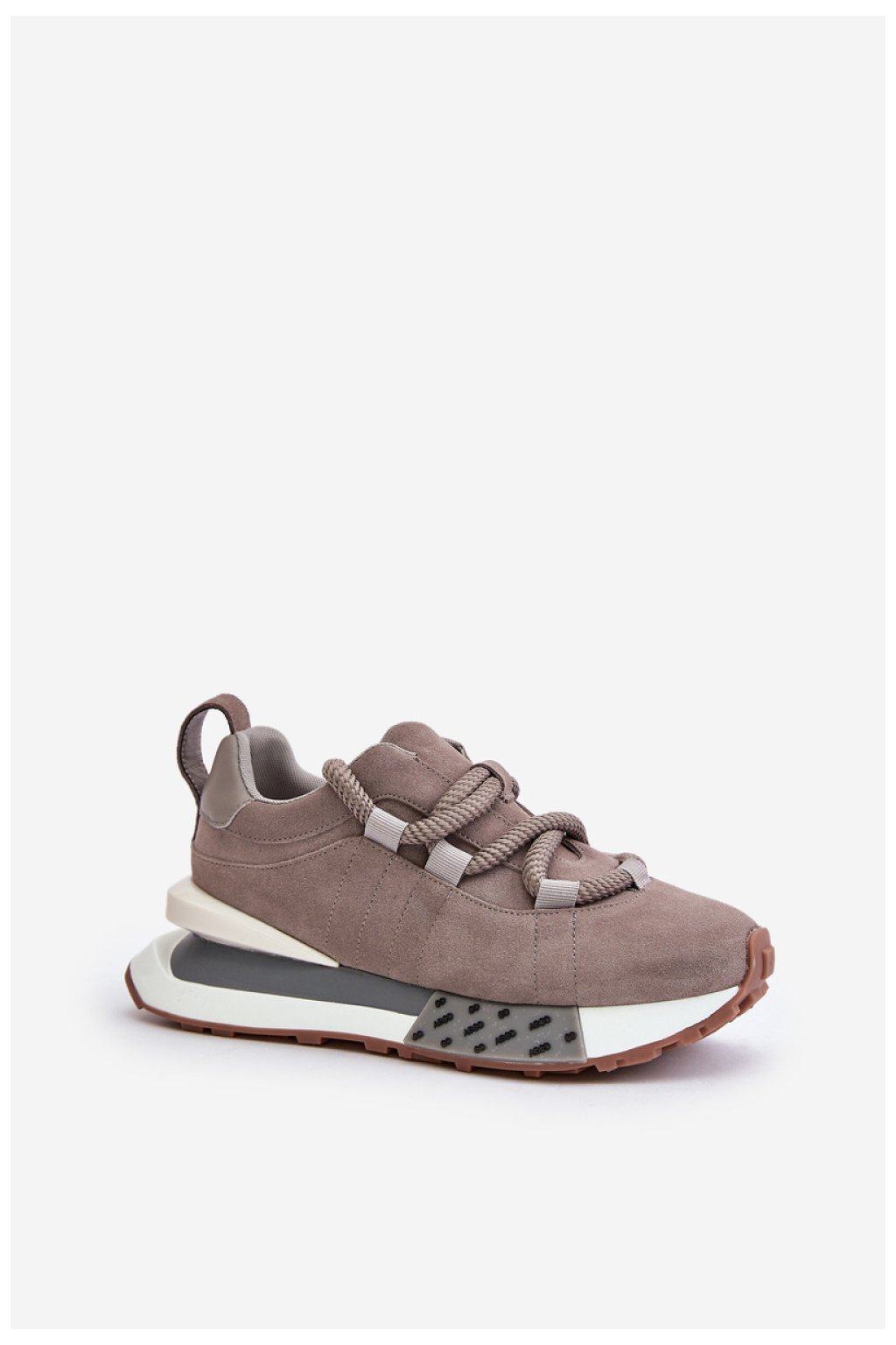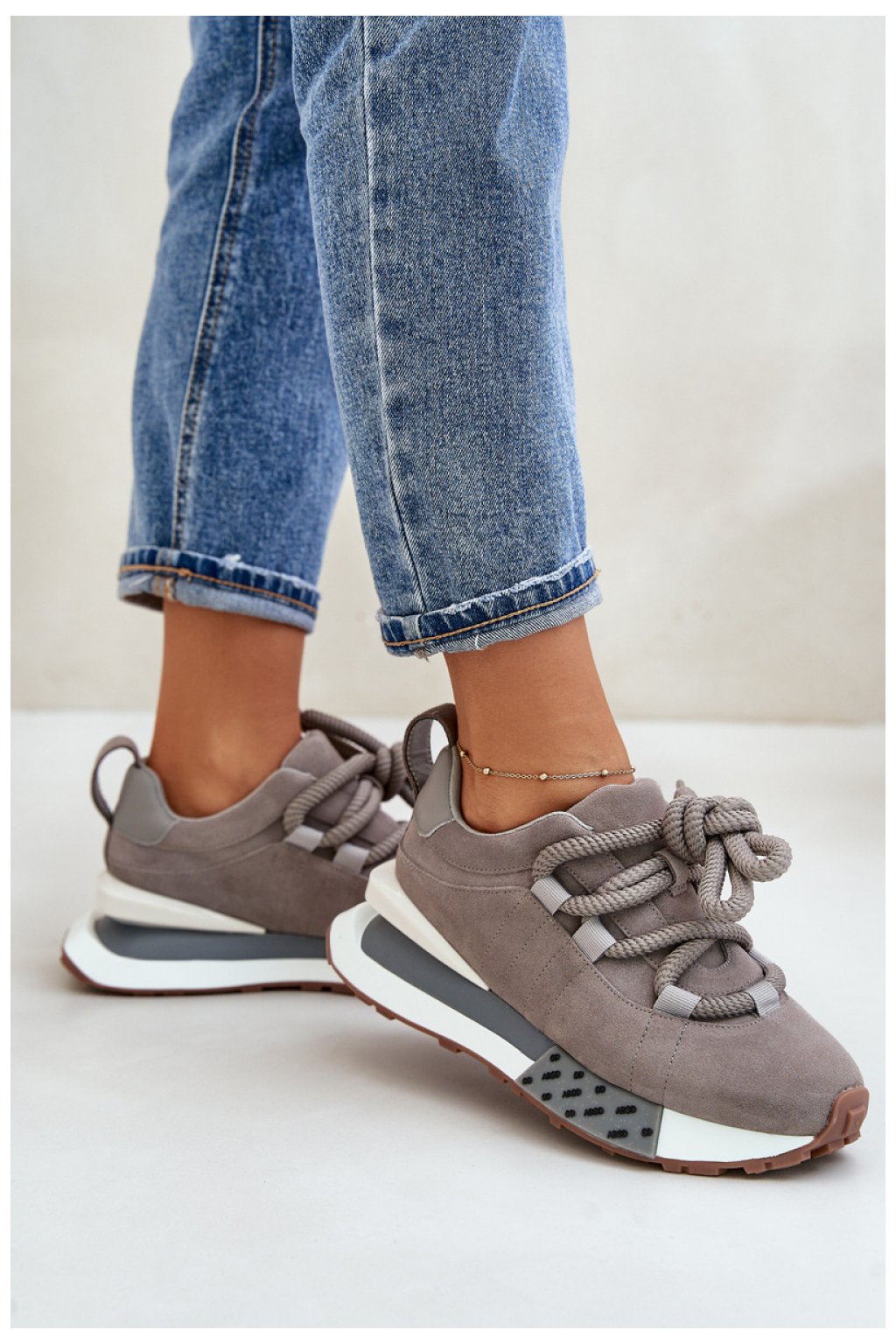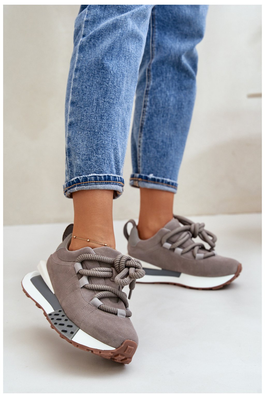 Dámské tenisky z přírodního semiše. Stojí na platformě. Tento model se vyznačuje silným šněrováním. Platforma poskytuje dodatečné pohodlí a lehkost při chůzi a zároveň přidává několik centimetrů výšky. Skvěle se hodí ke každodenním outfitům i ležérnějším sestavám. Vyberte si je, abyste podtrhli svůj jedinečný styl a užili si celodenní pohodlí.