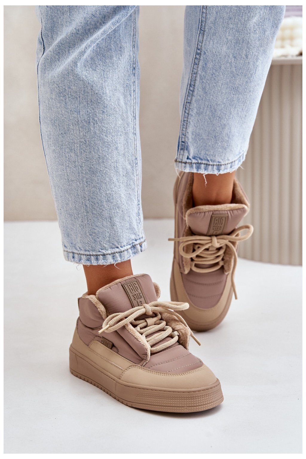 Zateplené tenisky od značky Big Star jsou stylovou volbou na chladnější dny. Vyrobené z textilního materiálu. Umístěné na podešvi z gumového materiálu, zaručují odolnost a pohodlí nošení. Model se šněrováním. Svršek sahá až k hleznu. Skvěle se hodí do každodenních, ležérních stylizací, zaručujících teplo a módní vzhled.