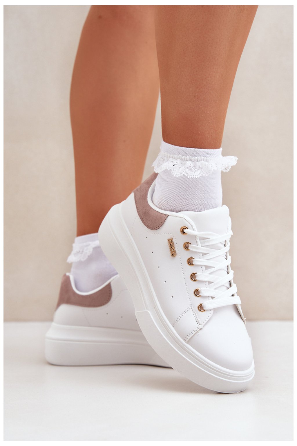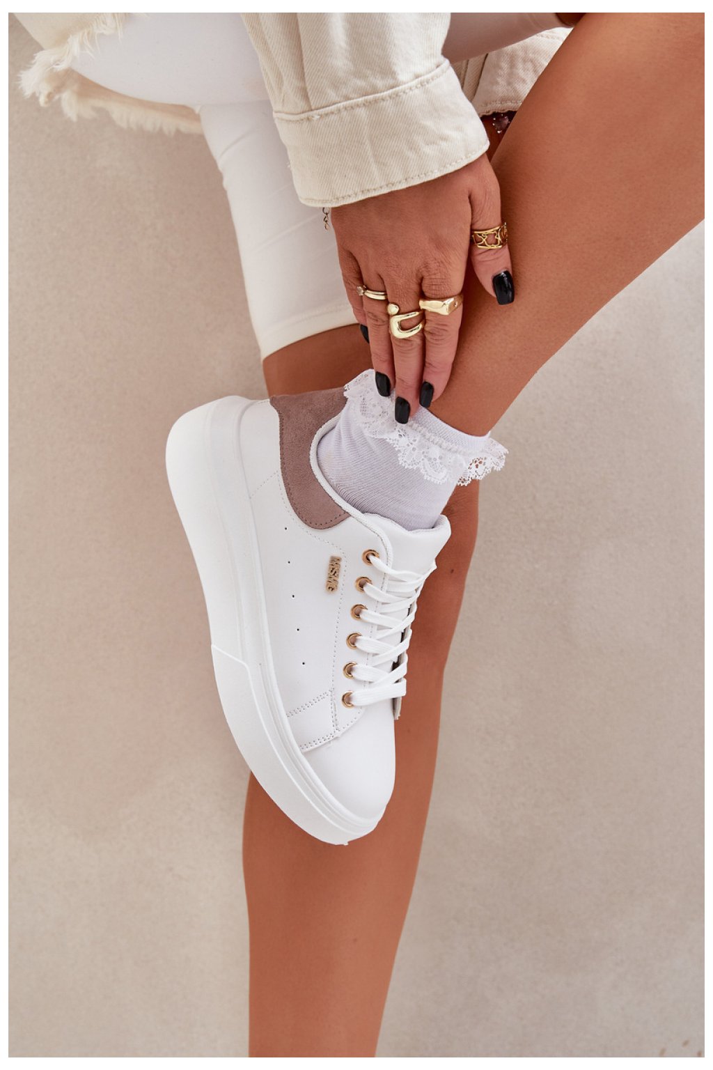Stylové dámské tenisky vyrobené z ekologické kůže. Umístěné na platformě. Zaoblené špičky. Měkká pěnová vložka navíc potažená materiálem zajistí pohodlí na každém kroku. Tento model skvěle doplní každodenní stylizace!