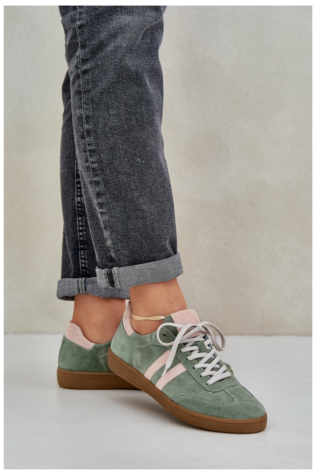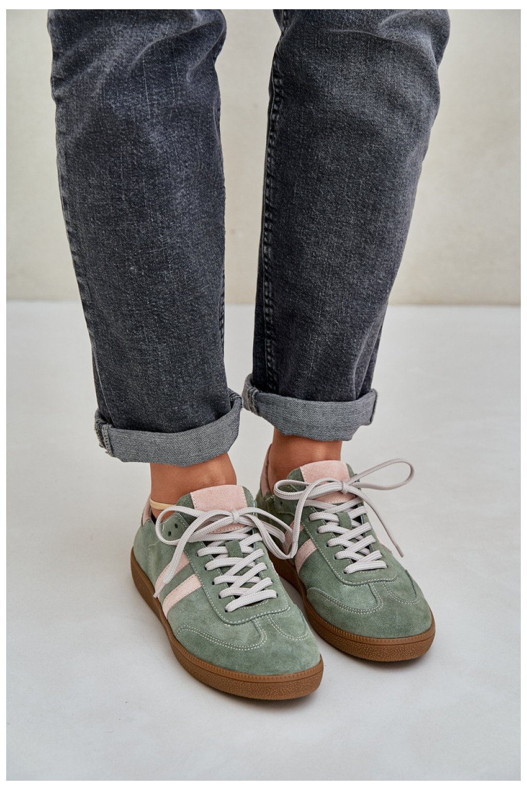 Moderní dámské tenisky vyrobené z přírodního semiše jsou ideální kombinací stylu a pohodlí. Nízké, šněrovací boty skvěle padnou jak k volnému, tak k elegantnějšímu outfitu. Měkká stélka zajišťuje pohodlí po celý den. Ideální na procházky po městě, nákupy nebo setkání s přáteli, jsou módním a praktickým doplňkem každého šatníku.
