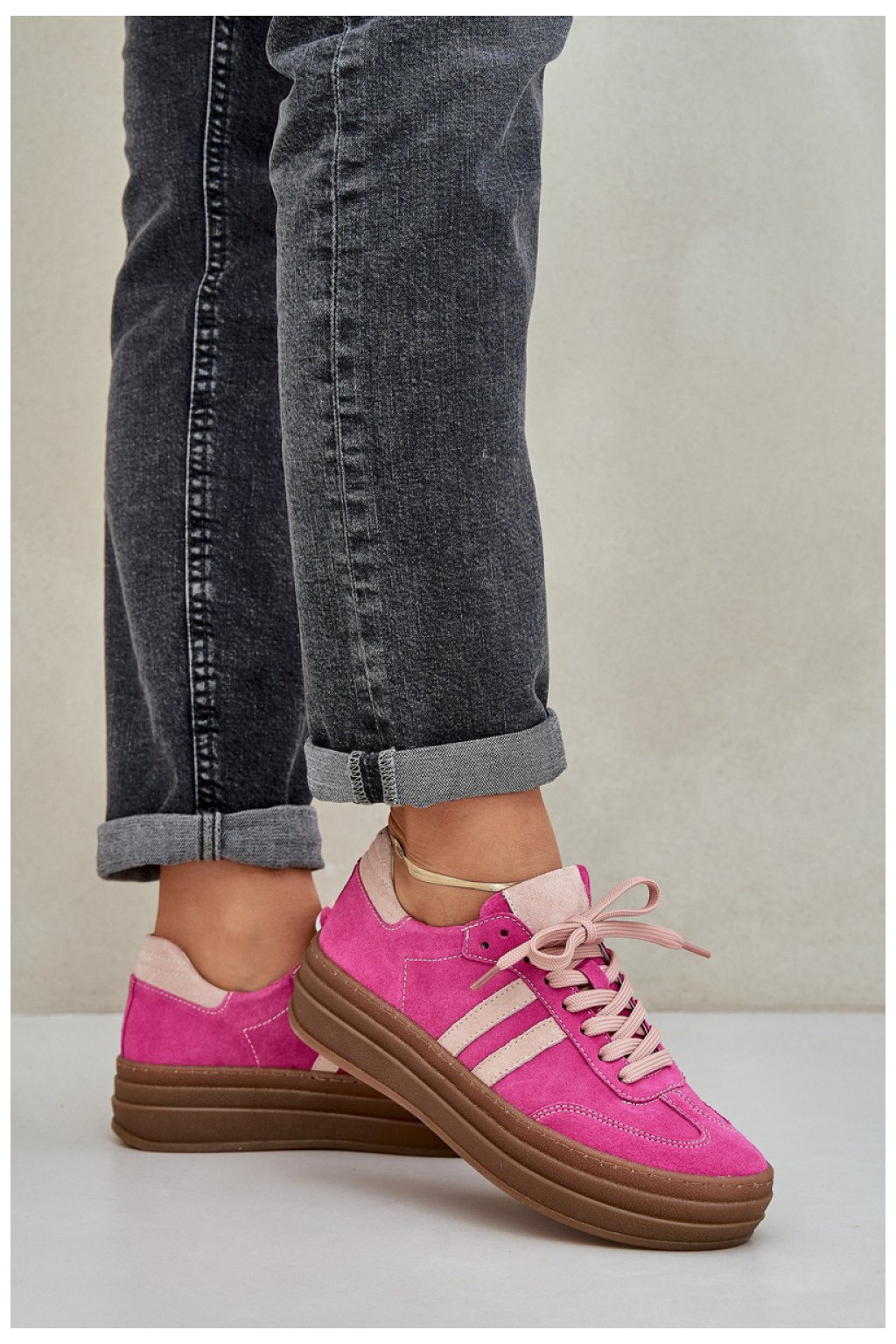 Stylové dámské tenisky vyrobené z nejkvalitnější přírodní kůže jsou skvělou volbou pro každou ženu, která ocení pohodlí i módní vzhled. Tyto jedinečné boty jsou umístěny na pevné, ale lehké platformě, která poskytuje další výšku a jemně zúží postavu. Tyto tenisky skvěle ladí jak s každodenními stylizacemi, tak s elegantnějšími outfity, což je dělá univerzálním prvkem šatníku.