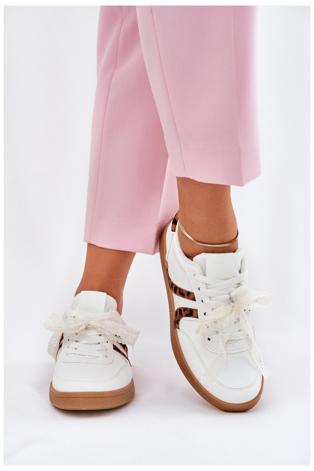 Stylové dámské tenisky z ekokože s nízkým střihem, které spojují pohodlí s módním vzhledem. Vyjímatelná pěnová stélka pokrytá materiálem poskytuje pohodlí a vhodnou tlumení po celý den. Na šněrování je ozdobná koronka, kterou lze odpojit, což umožňuje přizpůsobení vzhledu podle vlastních preferencí. Skvělé pro každodenní stylizace, tyto tenisky se vyznačují jedinečným vzhledem.