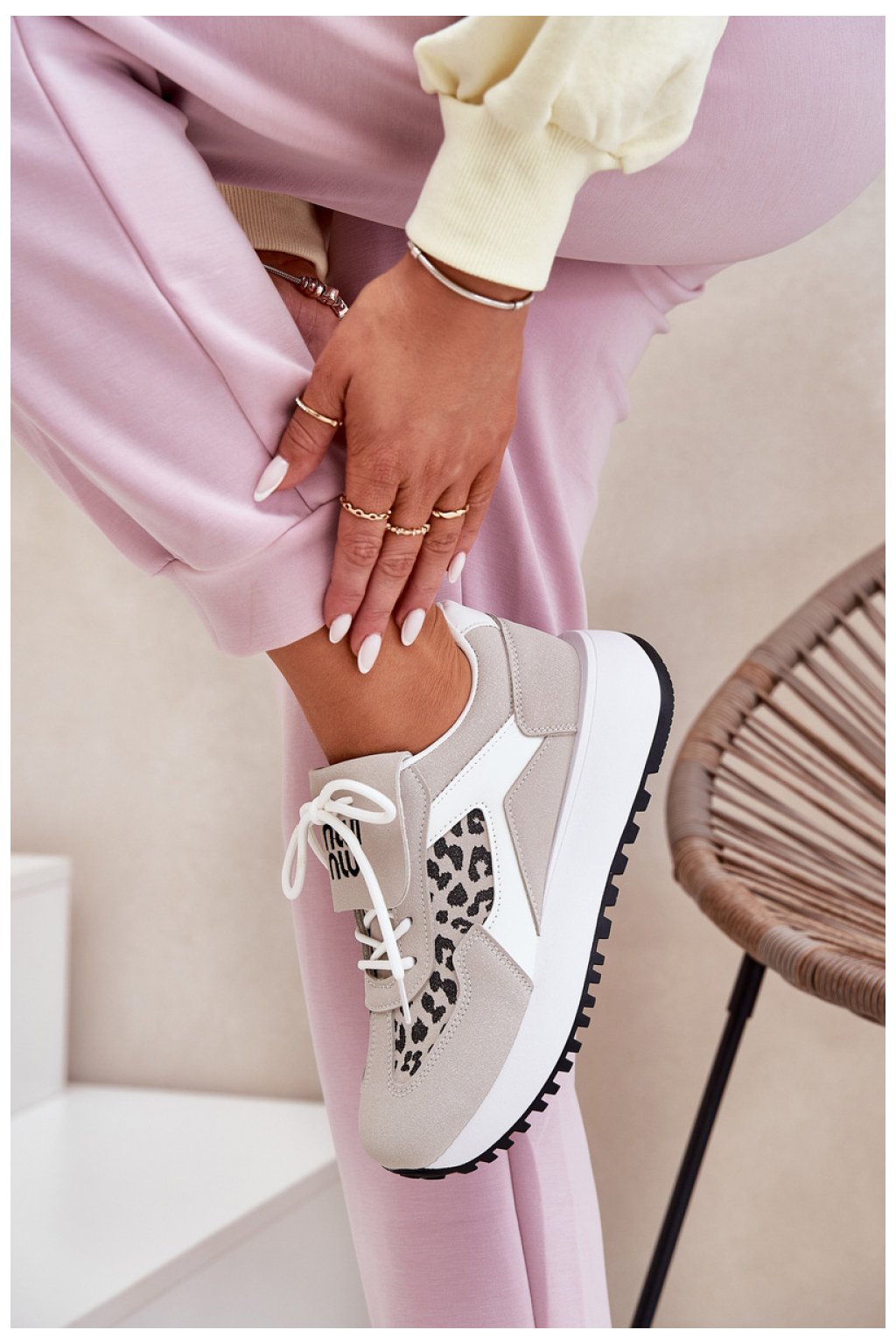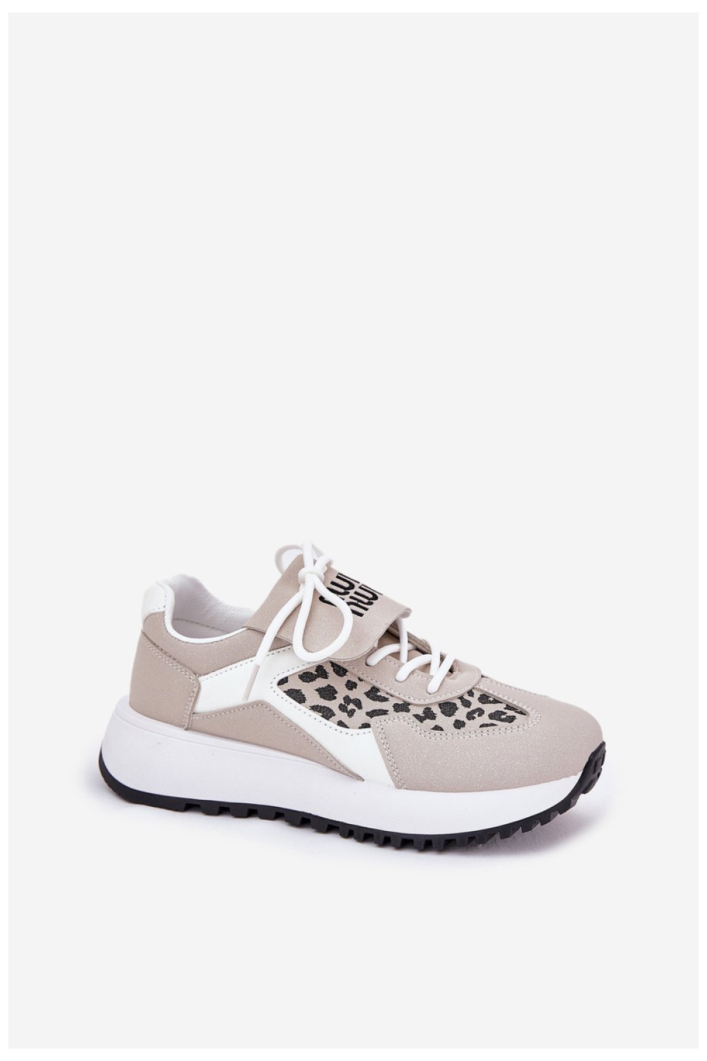 Moderní dámské sportovní boty vyrobené z ekologického semiše. Umístěné na platformě. Přední část boty je zdobená otočeným materiálem s nápisem, který jim dodává unikátní charakter. Tyto sportovní boty skvěle ladí s volnými stylizacemi, poskytují pohodlí a módní akcent každý den. Ideální na procházky nebo aktivity, budou skvělou volbou na různé příležitosti.