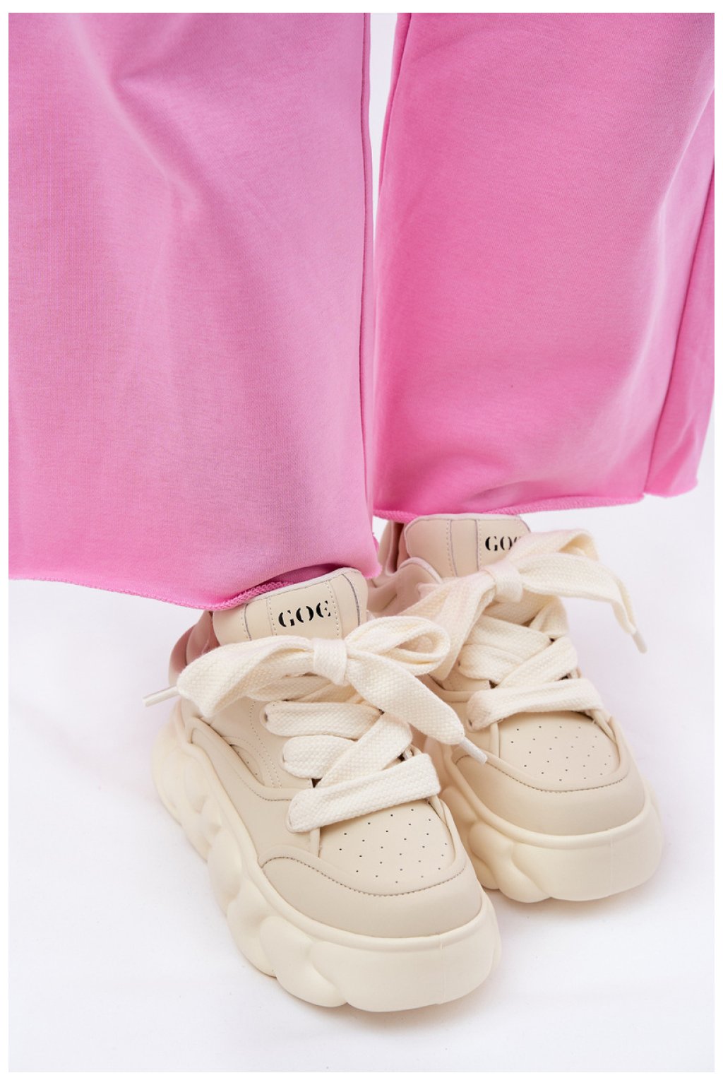 Tenisky značky GOE pro ženy vyrobené z vysoké kvality přírodní kůže spojují eleganci s moderním stylem. Umístěné na masivní platformě poskytují stabilitu a pohodlí po celý den. Silnější šněrování jim dodává charakter a měkká vložka zaručuje pohodlí během nošení. Tyto stylové tenisky budou skvělou volbou pro každodenní outfit, kombinující funkčnost s trendy vzhledem.