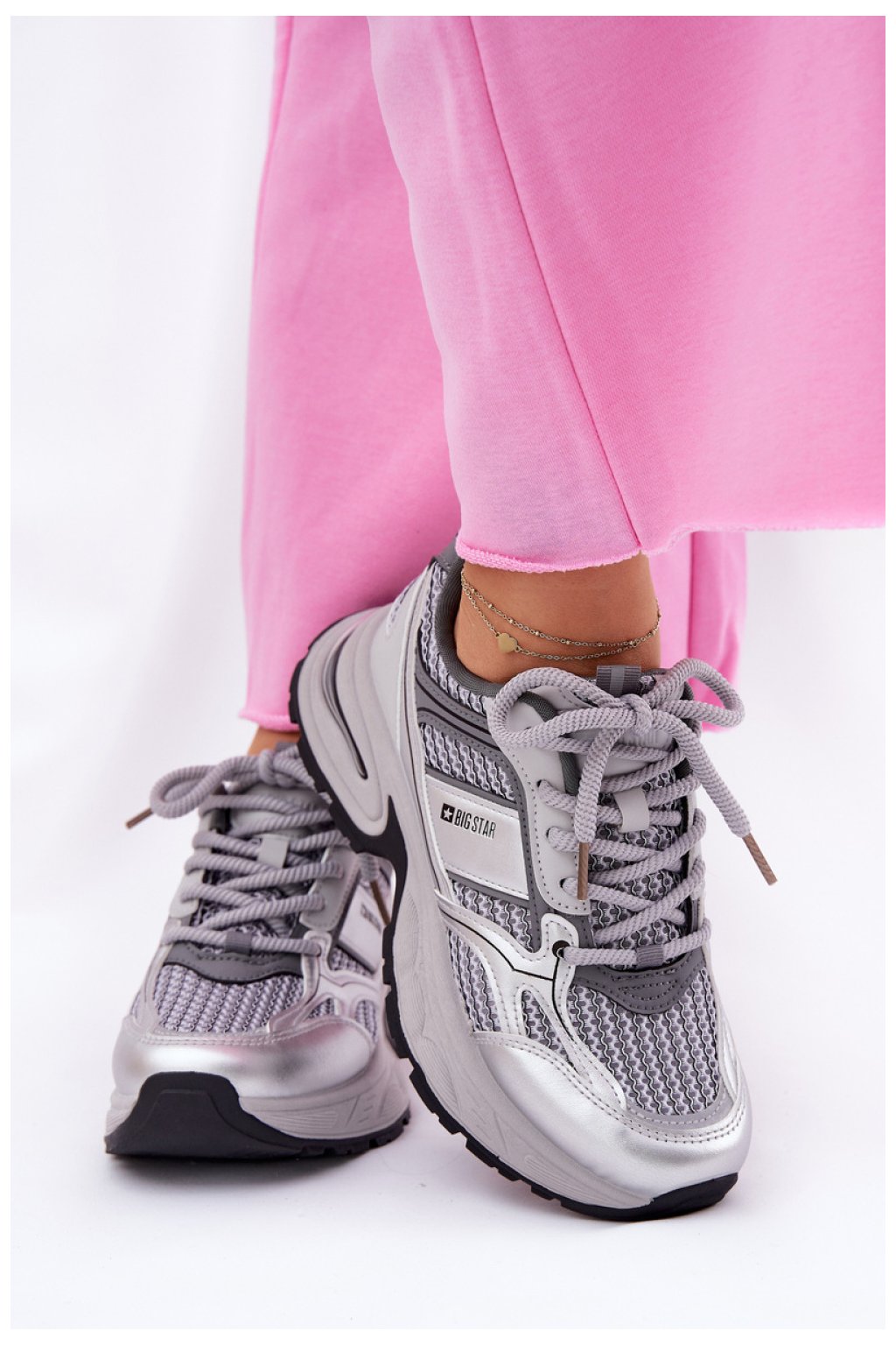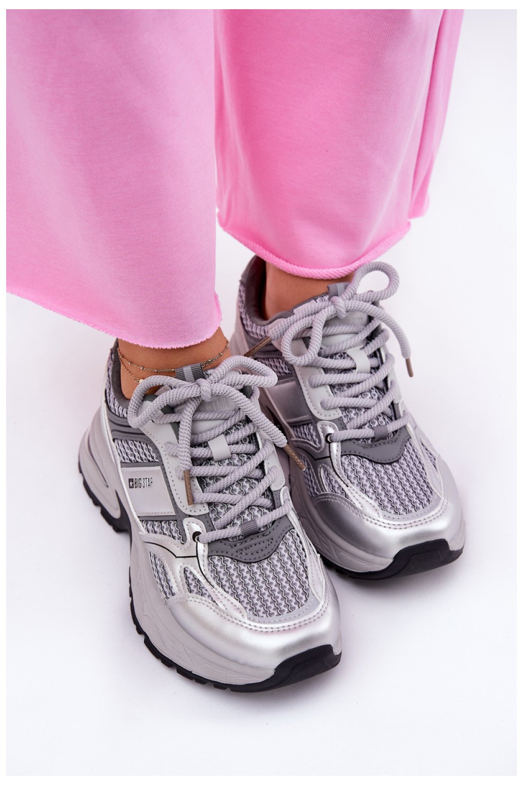 Tenisky dámské od značky Big Star. Vyrobené z kombinace eko kůže a textilního materiálu, jsou ideální volbou pro ty, kteří ocení styl a pohodlí. Umístěné na masivní podrážce poskytují stabilitu a pohodlí po celý den. Zaoblené špičky nabízejí volnost pohybu a měkká vložka pokrytá materiálem pečuje o odpovídající tlumení. Tyto tenisky jsou skvělou volbou na každý den!