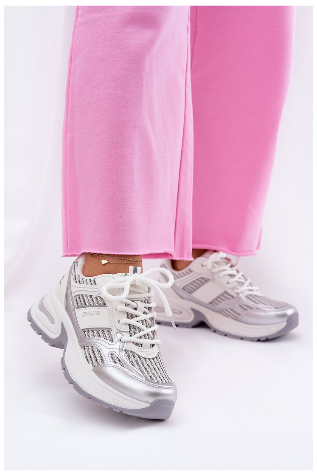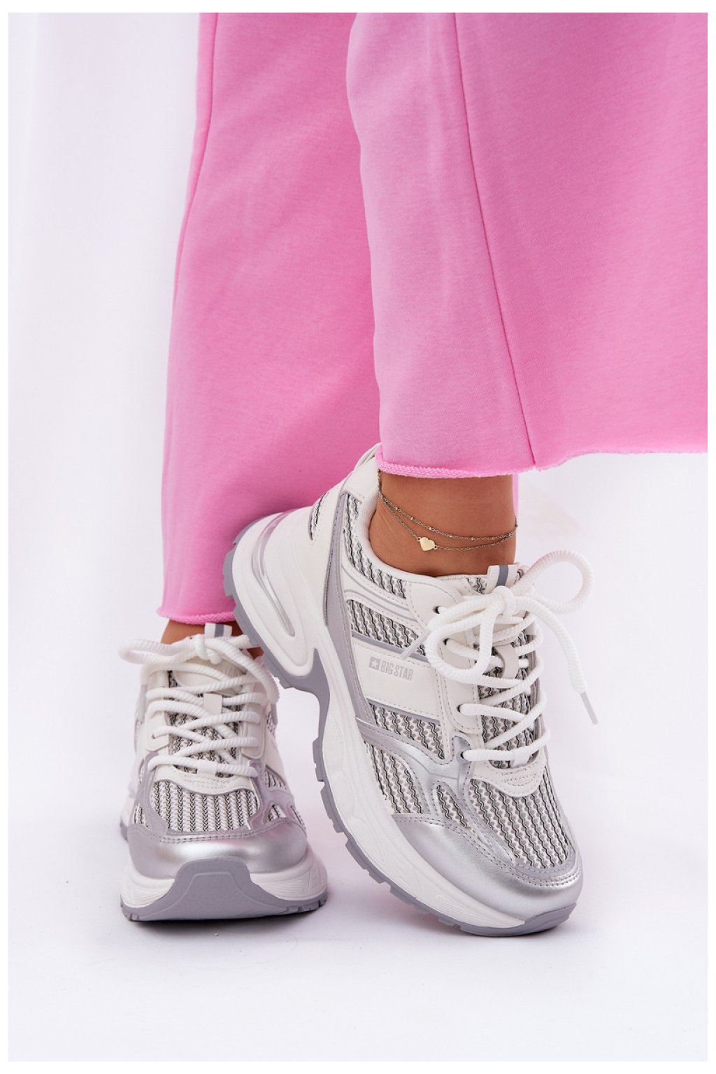 Tenisky dámské od značky Big Star. Vyrobené z kombinace eko kůže a textilního materiálu, jsou ideální volbou pro ty, kteří ocení styl a pohodlí. Umístěné na masivní podrážce poskytují stabilitu a pohodlí po celý den. Zaoblené špičky nabízejí volnost pohybu, a měkká stélka pokrytá materiálem pečuje o správnou amortizaci. Tyto tenisky jsou skvělou volbou na každý den!