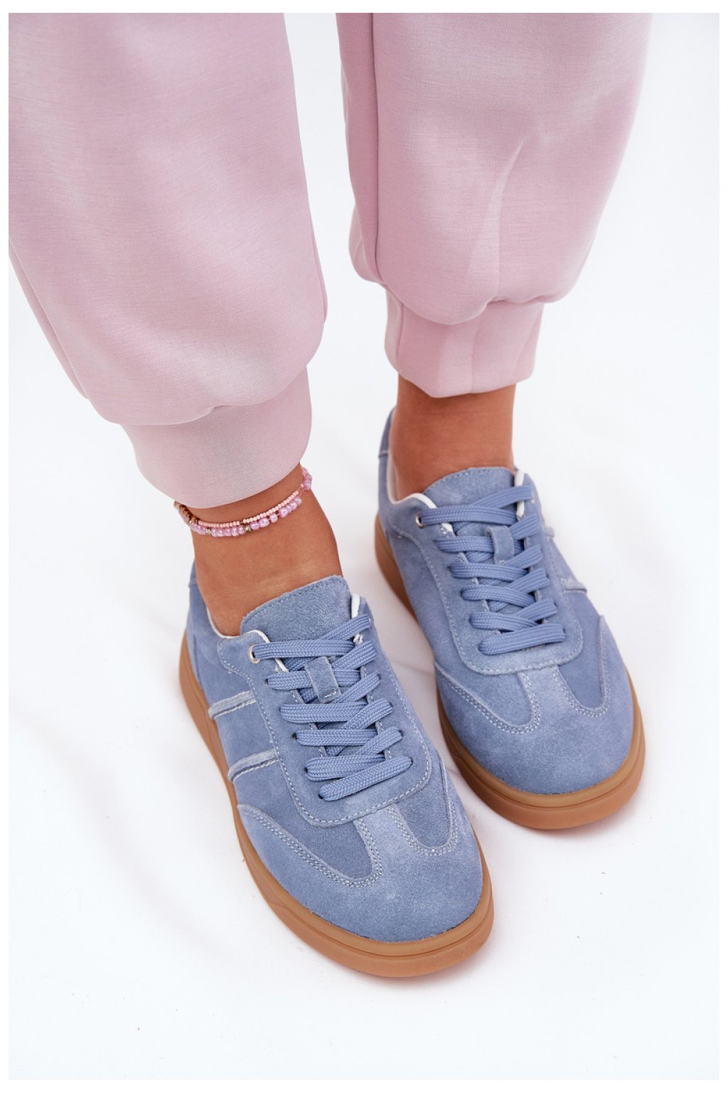Nízké dámské tenisky vyrobené z přírodního semiše. Špičky bot jsou zaoblené. Klasické šněrování umožňuje ideální přizpůsobení šířce nohy, a kožená stélka zajišťuje pohodlí a tlumení. Stylové a univerzální, skvěle ladí s různými stylizacemi.