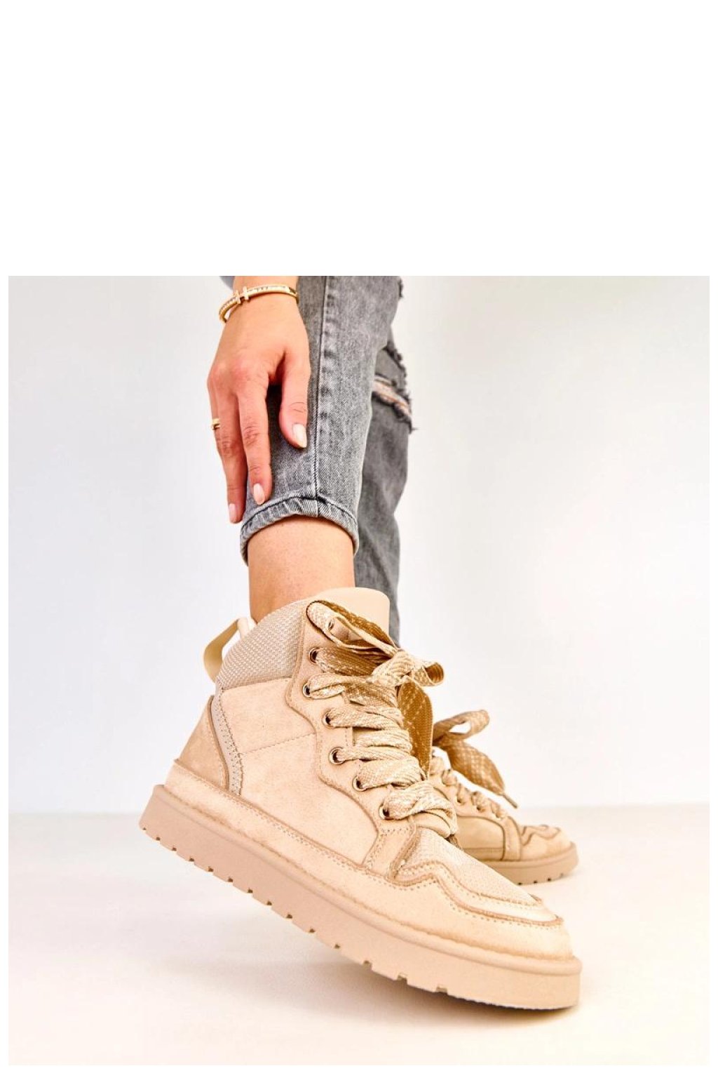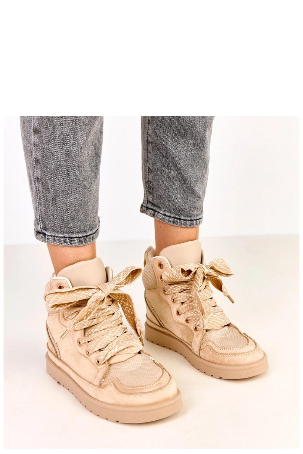 Moderní a pohodlné dámské sportovní boty vyrobené z semišové ekologické kůže, které spojují sportovní charakter s módním designem. Silné šněrování jim dodává originální a výrazný vzhled, zatímco kulatá špička zajišťuje pohodlí během chůze. Model má podrážku o výšce 2,5 cm, která jemně zvýší postavu, poskytující stabilitu a pohodlí při nošení. Textilní vložka zvyšuje pohodlí při nošení po celý den. Ideální volba pro ženy, které ocení módní sportovní styl, pohodlí a moderní design pro každodenní, ležérní stylizace.